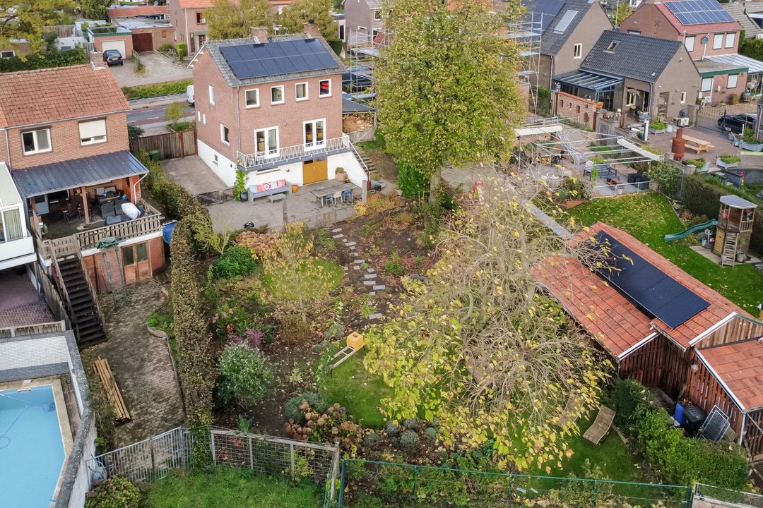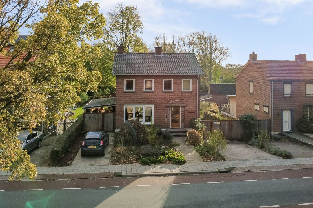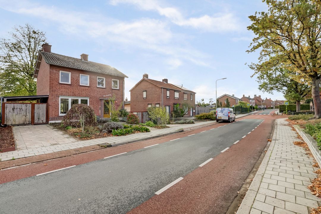 Aan de zijkant van de woning bevindt zich een overkapping die in gebruik is als fietsenstalling en houtopslag. Deze plek is sfeervol omgroeid met druivenstruiken, wat een charmante en natuurlijke uitstraling geeft. Aan beide zijkanten van het huis liggen bovendien twee ruime opritten waardoor er meer dan voldoende parkeergelegenheid is voor meerdere auto’s, een camper, caravan of (bedrijfs)bus. Deze buitenruimte vormt samen met het souterrain en het balkon aan de achterzijde een perfecte combinatie van wooncomfort, buitenleven en vrijheid!