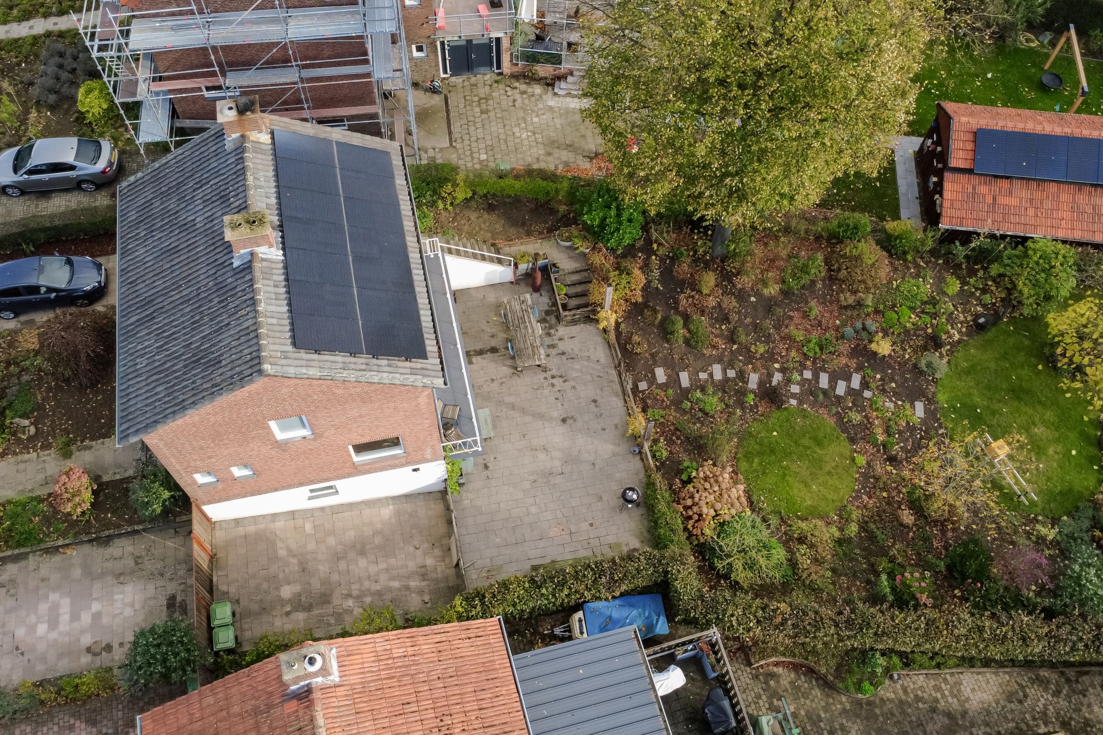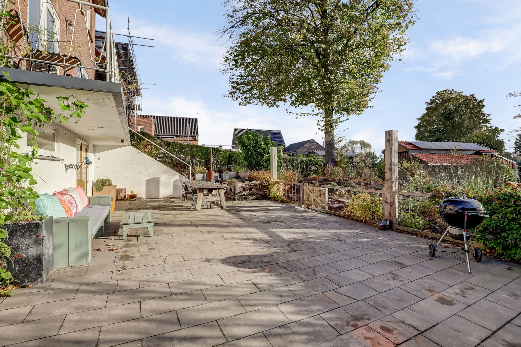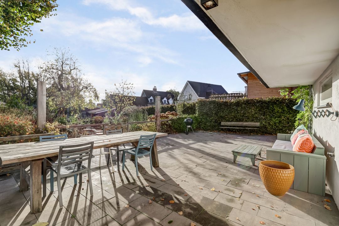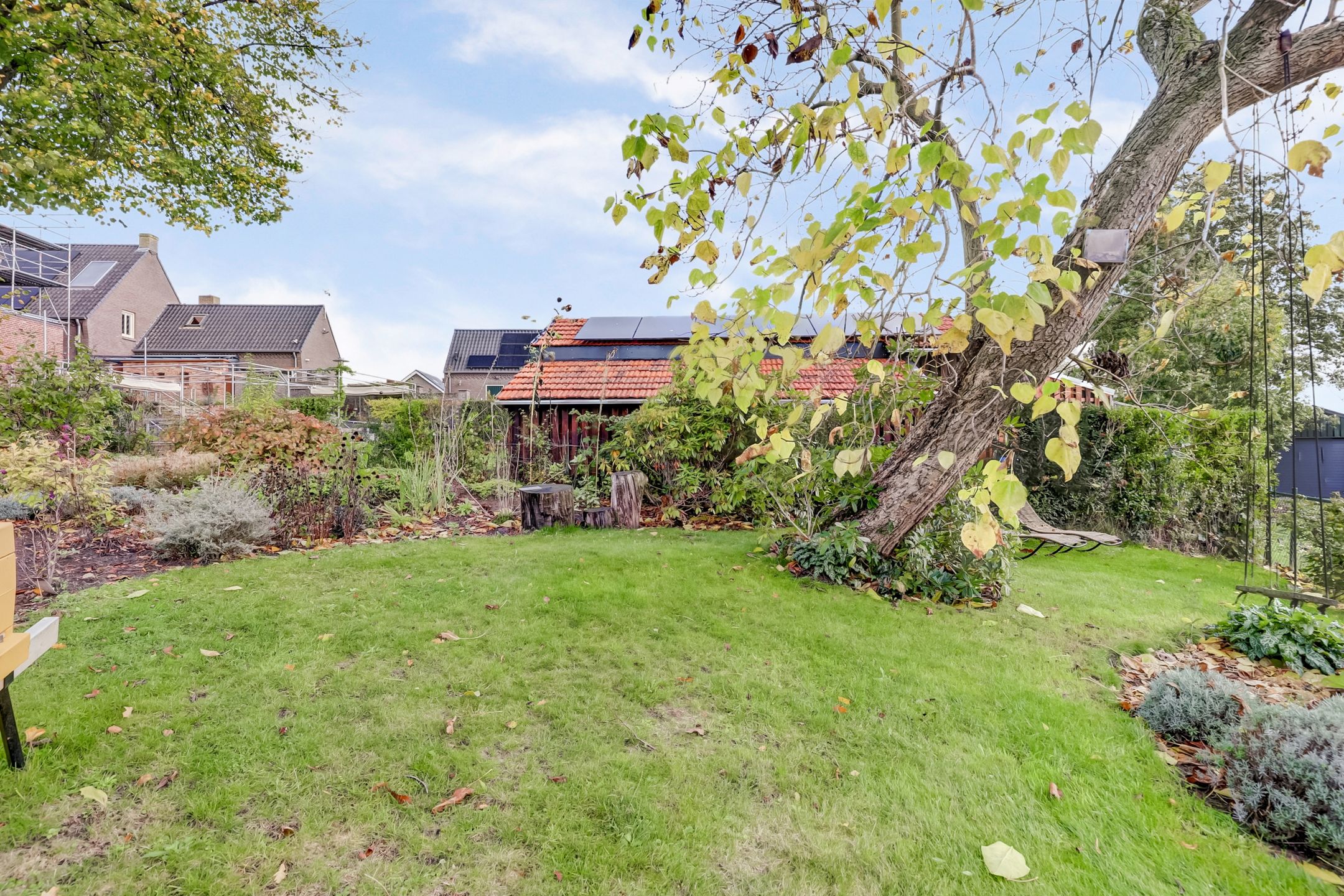 De achtertuin is een heerlijk verlengstuk van de woning, een plek waar je volop kunt genieten van rust, ruimte en het vrije uitzicht. Met een lengte van 25 tot 30 meter biedt de tuin volop mogelijkheden om te ontspannen, te tuinieren of te spelen. Direct achter het huis ligt een groot terras, ideaal voor gezellige etentjes of lange zomeravonden buiten. De tuin is fraai aangelegd en wordt gesierd door enkele prachtige bomen, waaronder een lindeboom en een Catalpaboom die in de zomer voor natuurlijke schaduw en een groen karakter zorgen samen met het gazon en de vele plantenborders die vol staan met volwassen beplanting. Achterin de tuin kijk je uit over het aangrenzende weilanden met paarden en daarachter de Haelensebeek, een uitzicht dat nooit verveelt!