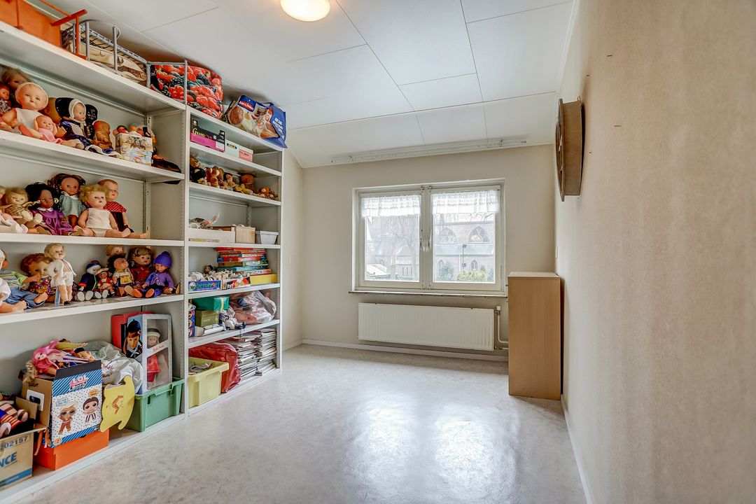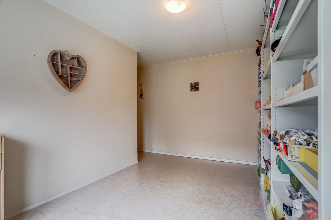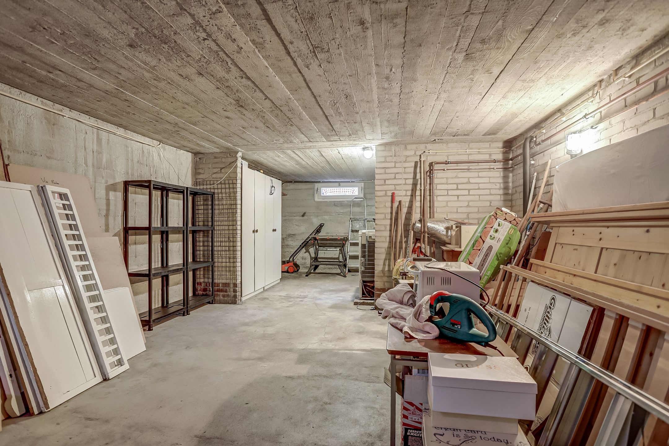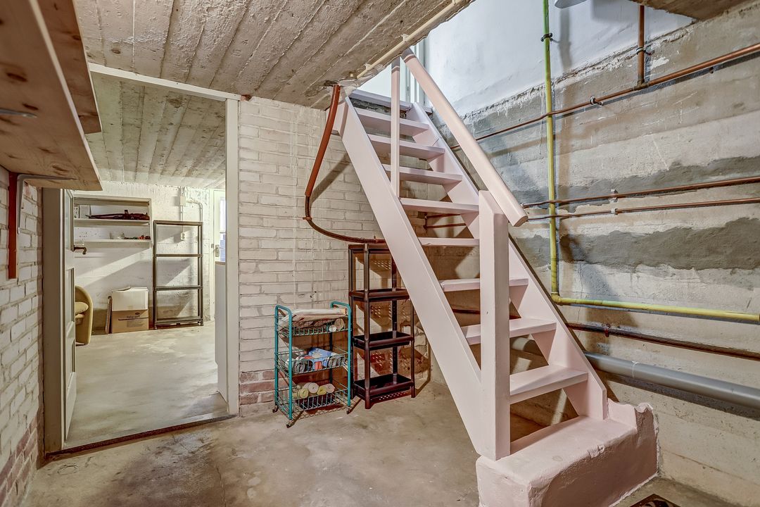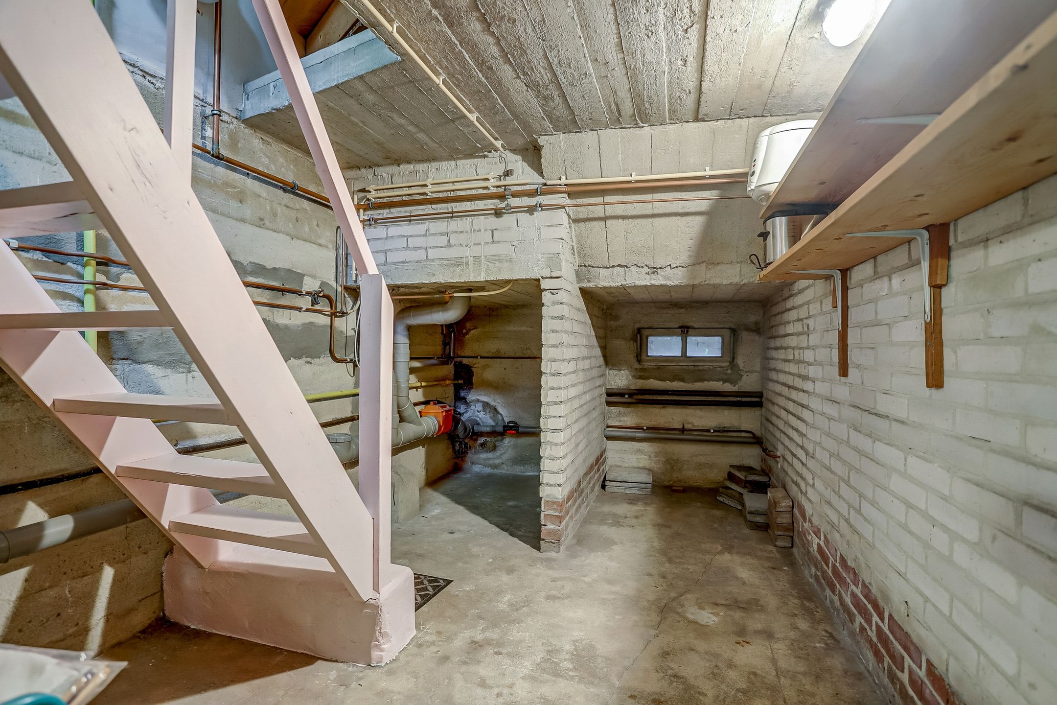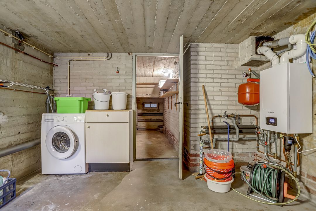 Via de keuken heb je toegang tot de kelder middels een lichtroze trap. De hele woning is onderkelderd dus je hebt hier de beschikking over maar liefst drie ruimtes. In de eerste ruimte kun je flink wat provisie kwijt want deze is het makkelijkste toegankelijk via de keuken. Een deur geeft toegang tot de andere delen van de kelder. Hier vind je onder andere de witgoedaansluitingen, de ketel (Remeha 2023), een wasbak en natuurlijk veel opbergruimte. Een trapje met patroontegeltjes geeft toegang tot de tuin. Als je langs dit trapje een fietsgoot maakt kun je de kelder ook nog gebruiken als fietsenstalling. De ruimte is er in ieder geval!
