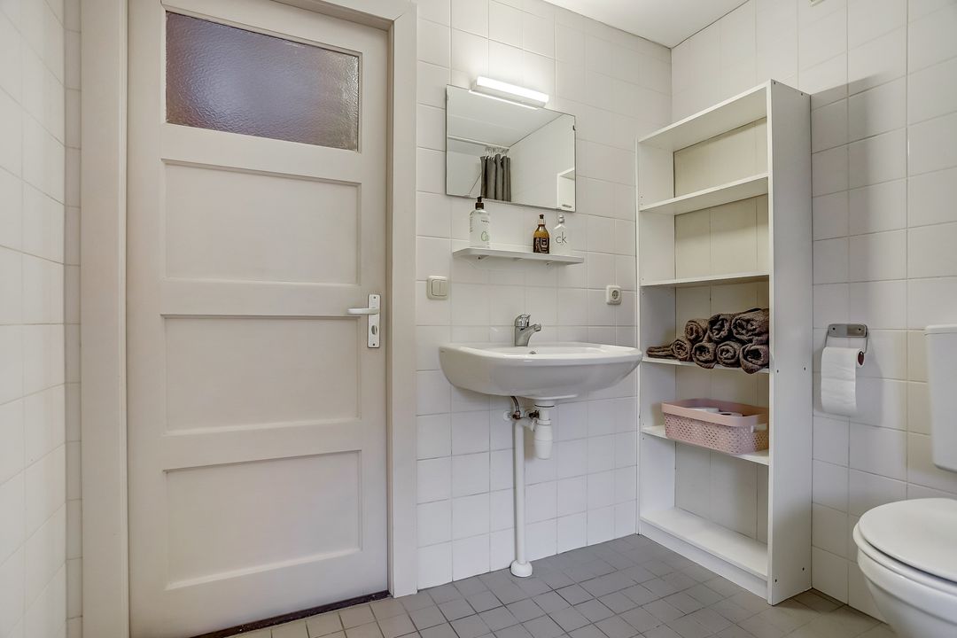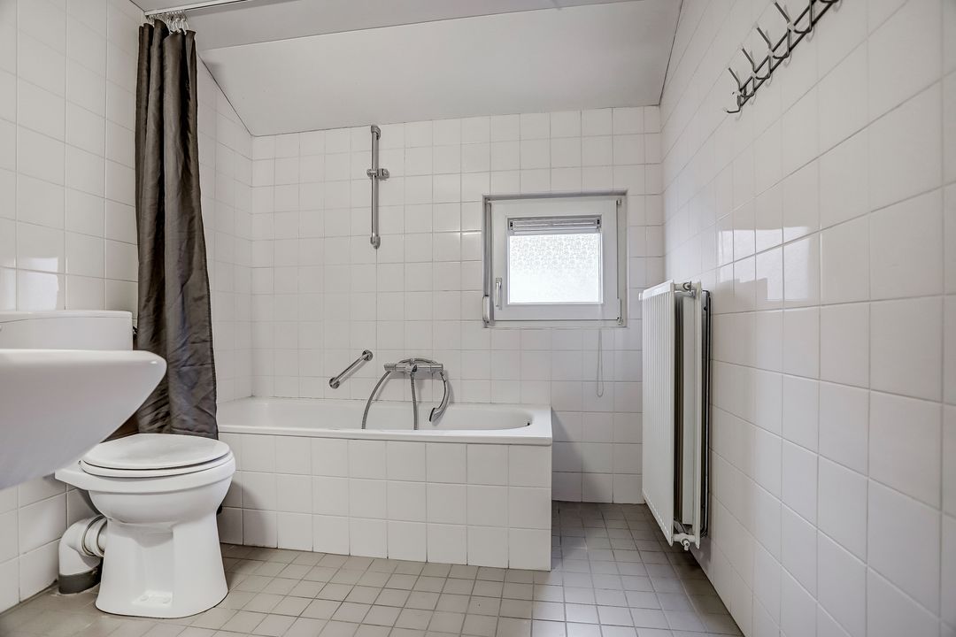 De badkamer zou gemoderniseerd mogen worden maar is netjes onderhouden en functioneel. Je kunt lekker badderen in het ligbad en hier ook een douche in nemen. Er is een toilet aanwezig en een wasbak. Een draaikiepraam met ventilatierooster zorgt voor de nodig ontluchting. Dit raam heeft ook een rolluik zodat je in de badkamer altijd alle privacy hebt. De badkamer is tijdloos ingericht met lichte vloer- en wandtegels.
