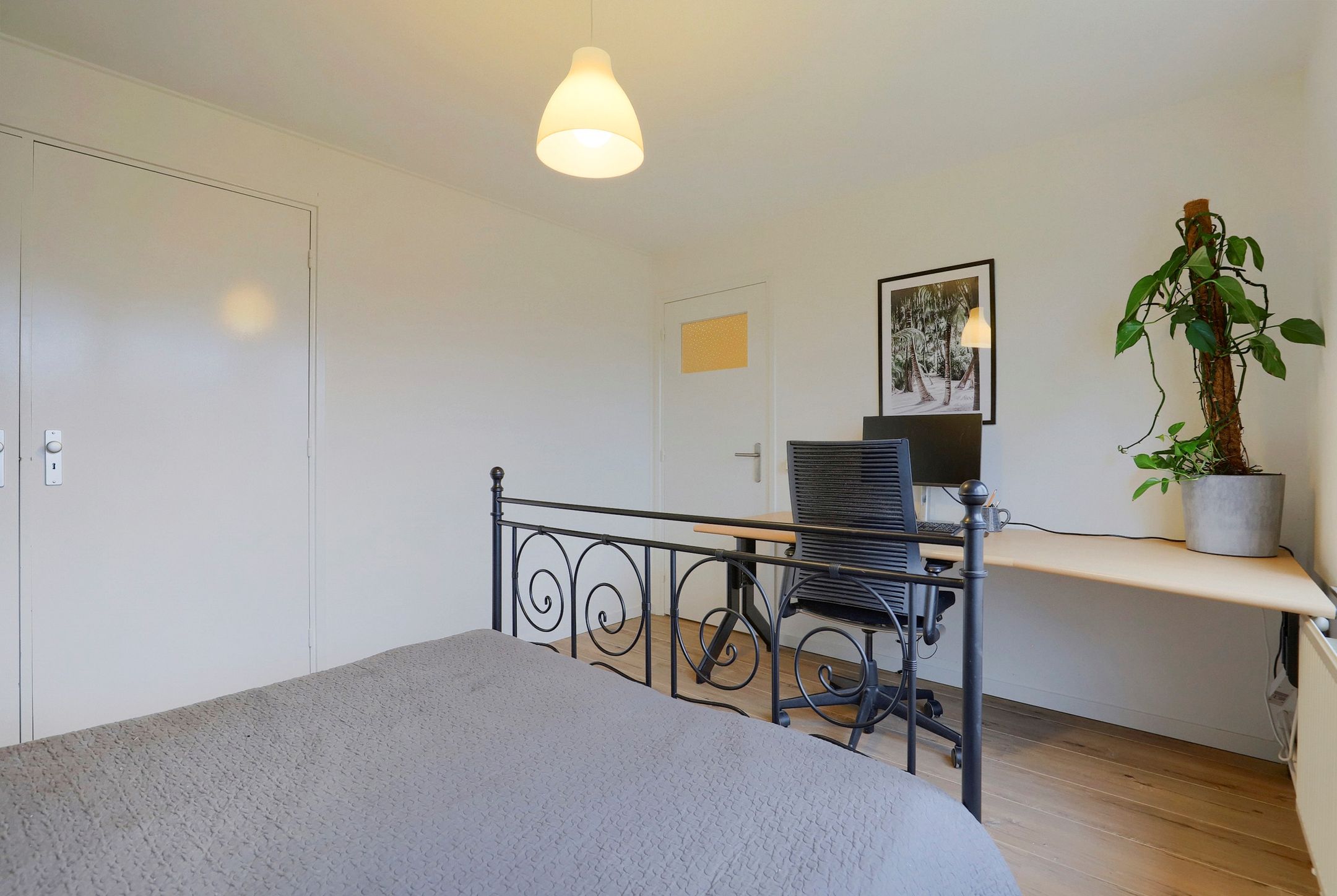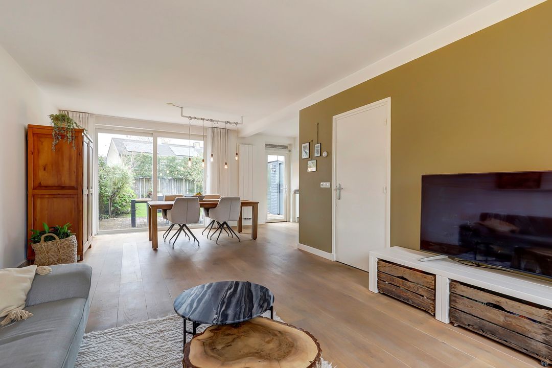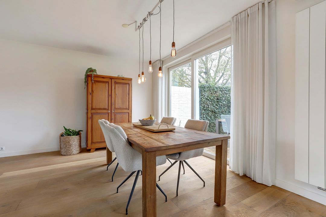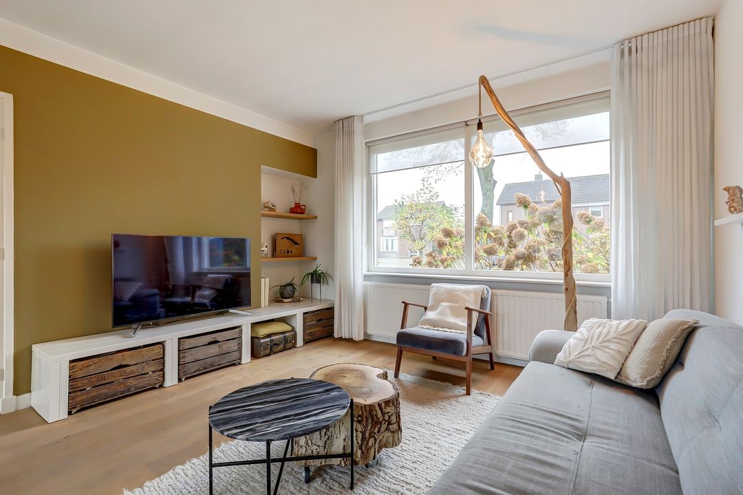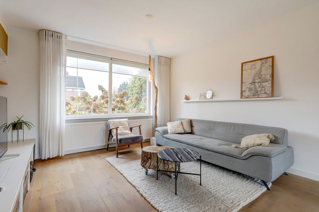 Door de grote raampartij aan de voorkant van de woning, de glazen schuifpui aan de achterkant en het zijraam komt er lekker veel licht binnen in deze fijne ruimte. De glad gestucte wanden, speelse nis in de muur en de warme eikenhouten vloer geven je meteen het gevoel dat je thuis komt in deze woning!