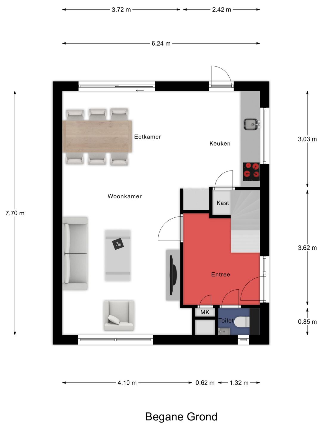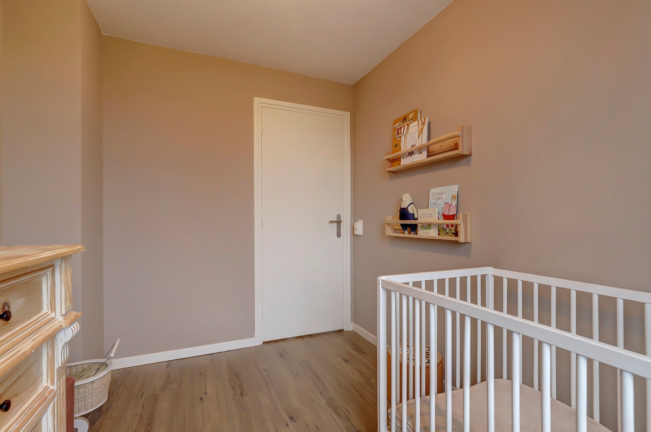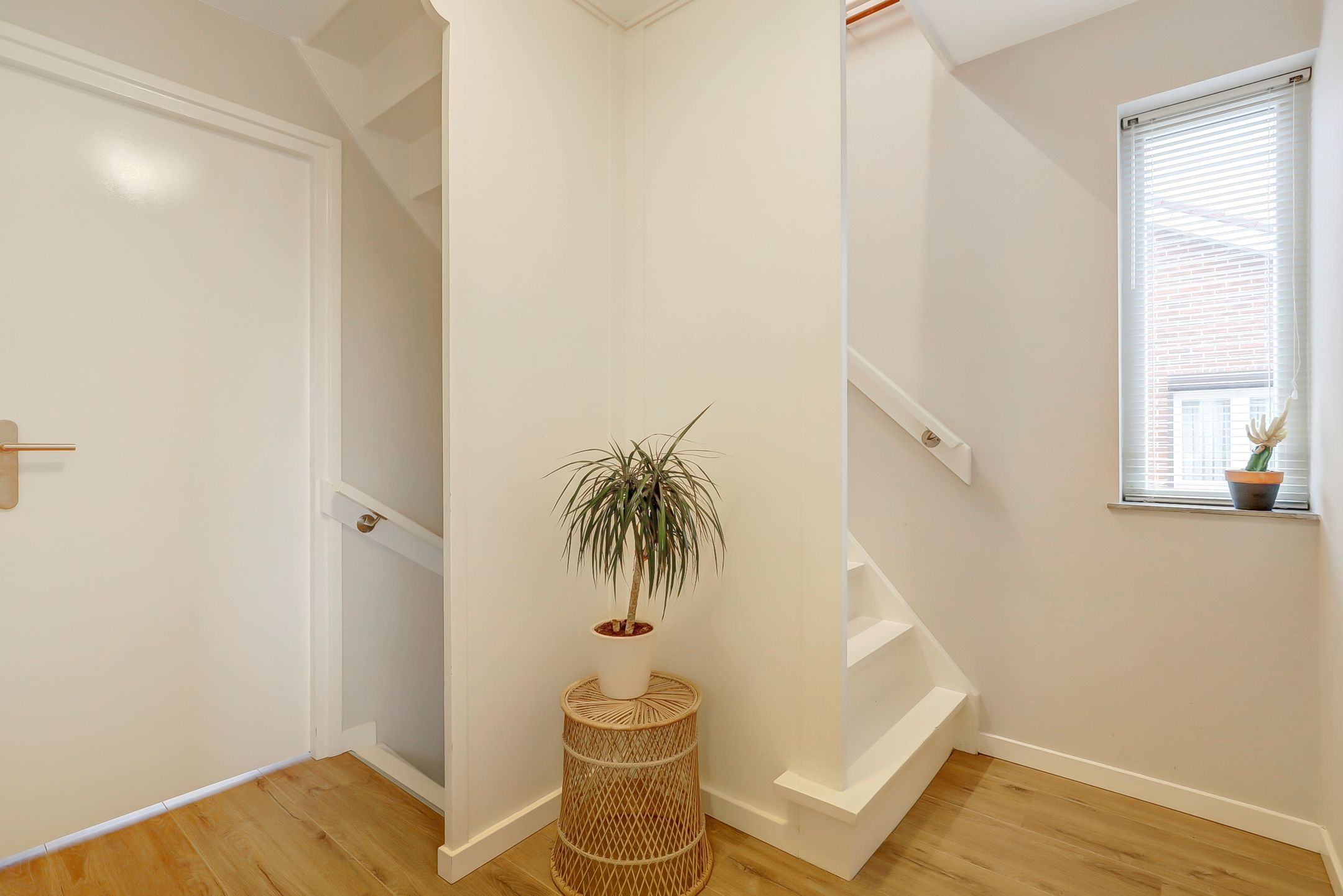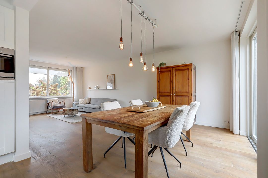 Door de grote raampartij aan de voorkant van de woning, de glazen schuifpui aan de achterkant en het zijraam komt er lekker veel licht binnen in deze fijne ruimte. De glad gestucte wanden, speelse nis in de muur en de warme eikenhouten vloer geven je meteen het gevoel dat je thuis komt in deze woning!
