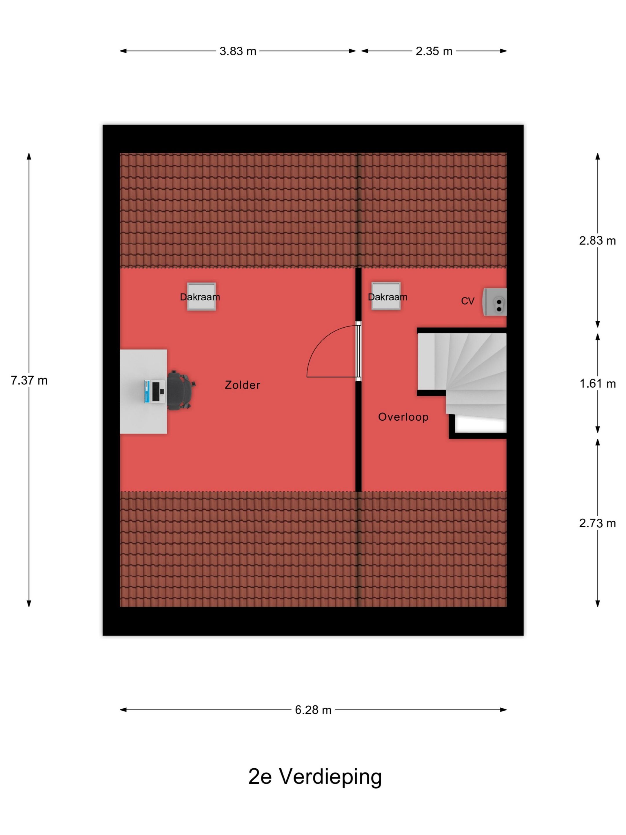 De zolder is met een vaste trap te bereiken en biedt mogelijkheden voor een vierde slaapkamer, al dan niet in combinatie met een dakkapel, een fijne werkplek of gewoon lekker veel ruimte om je spullen op te bergen. Op de overloop hangt de Intergas CV ketel uit 2014 en het is ook mogelijk om hier het witgoed te plaatsen.