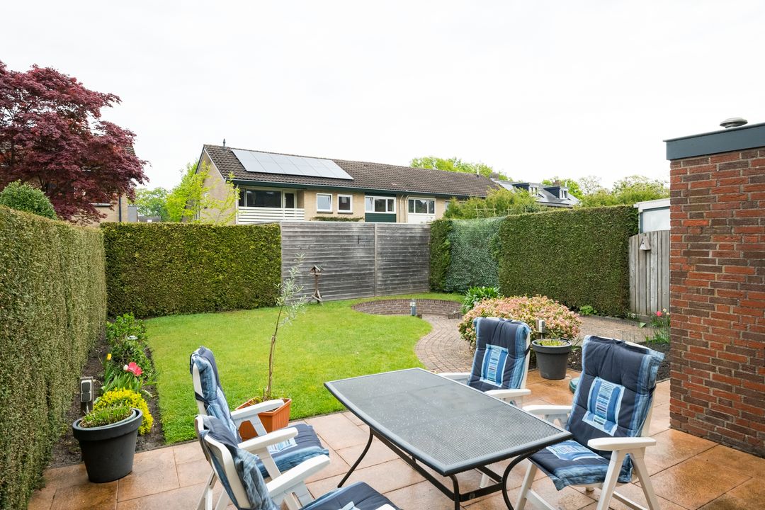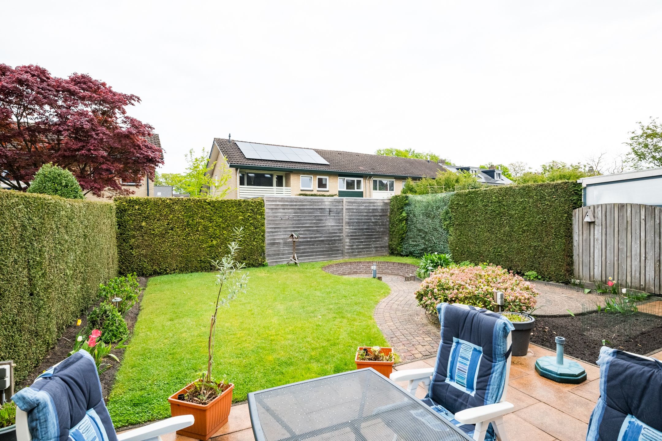 De fraai aangelegde tuin (11 x 12 m²) is een ware oase van rust en privacy. Achter in de tuin kunt u hier optimaal genieten van de middag- en avondzon, terwijl u op het terras direct achter het huis prettig in de schaduw zit. De tuin is volledig omheind en beschikt over diverse terrassen, borders met vaste planten en een gazon. Een verlaagd gedeelte creëert verschillende niveaus, wat de tuin een speels karakter geeft. De tuin is voorzien van buitenverlichting en buitenstopcontacten, zodat u ook op warme zomeravonden heerlijk buiten kunt vertoeven.