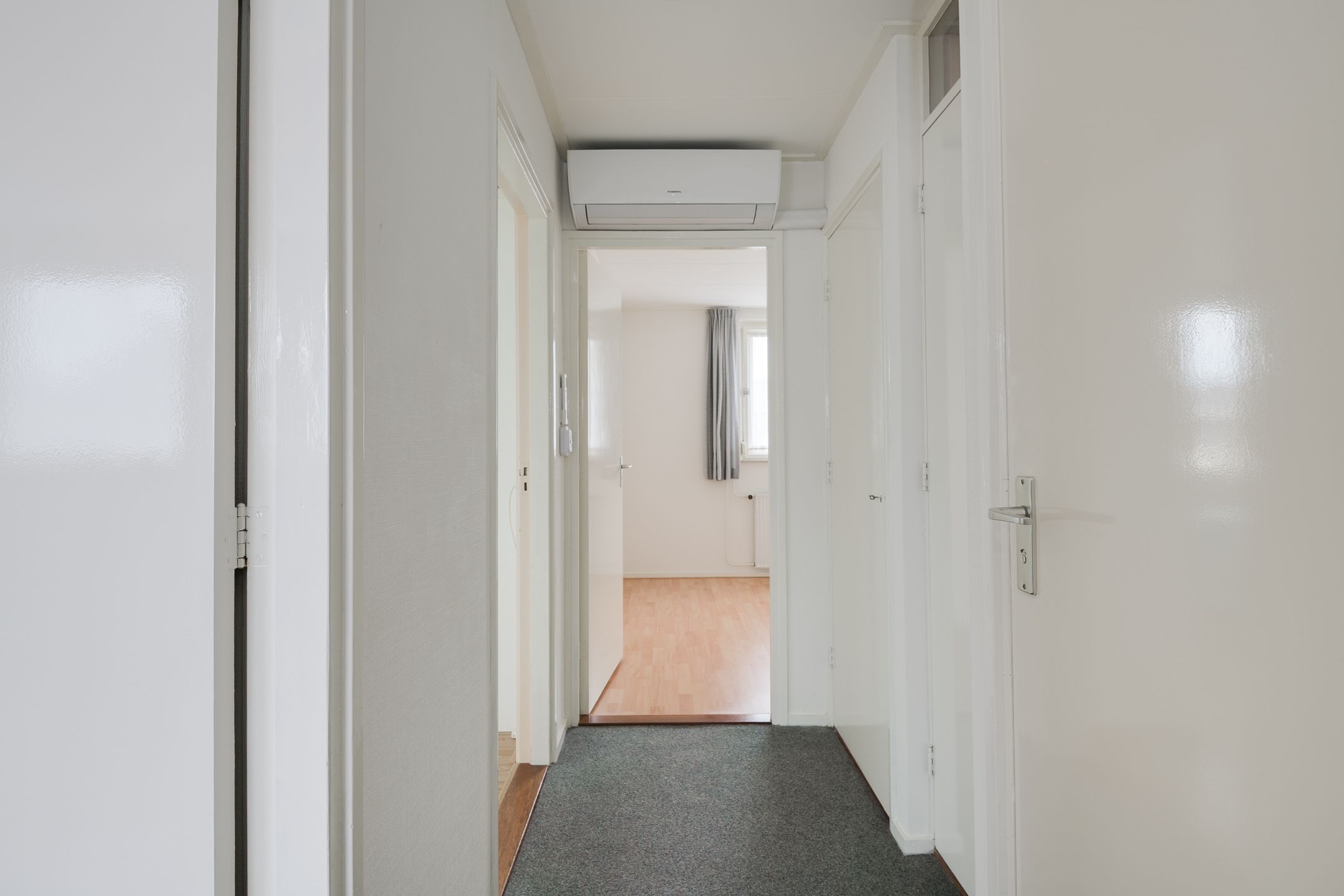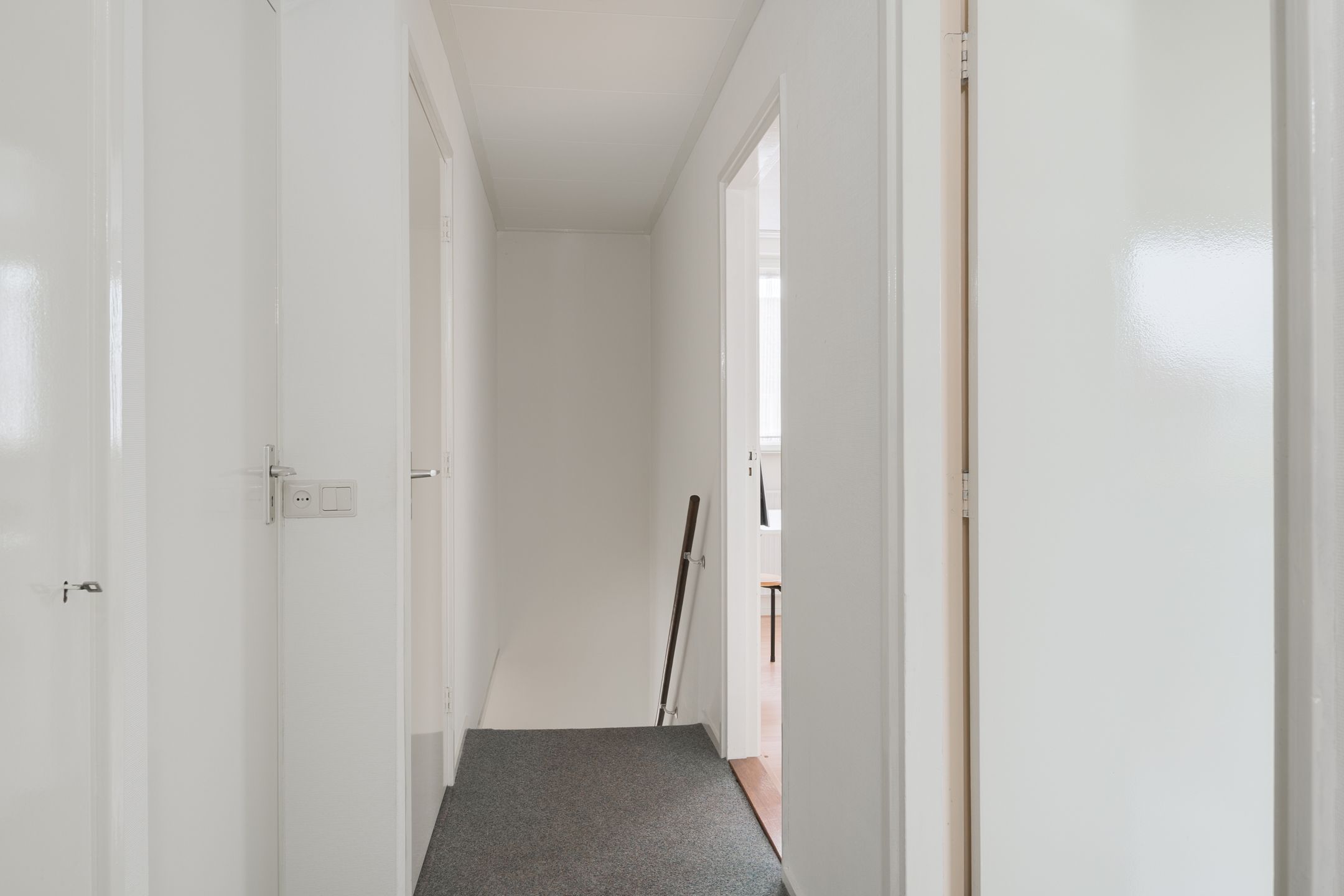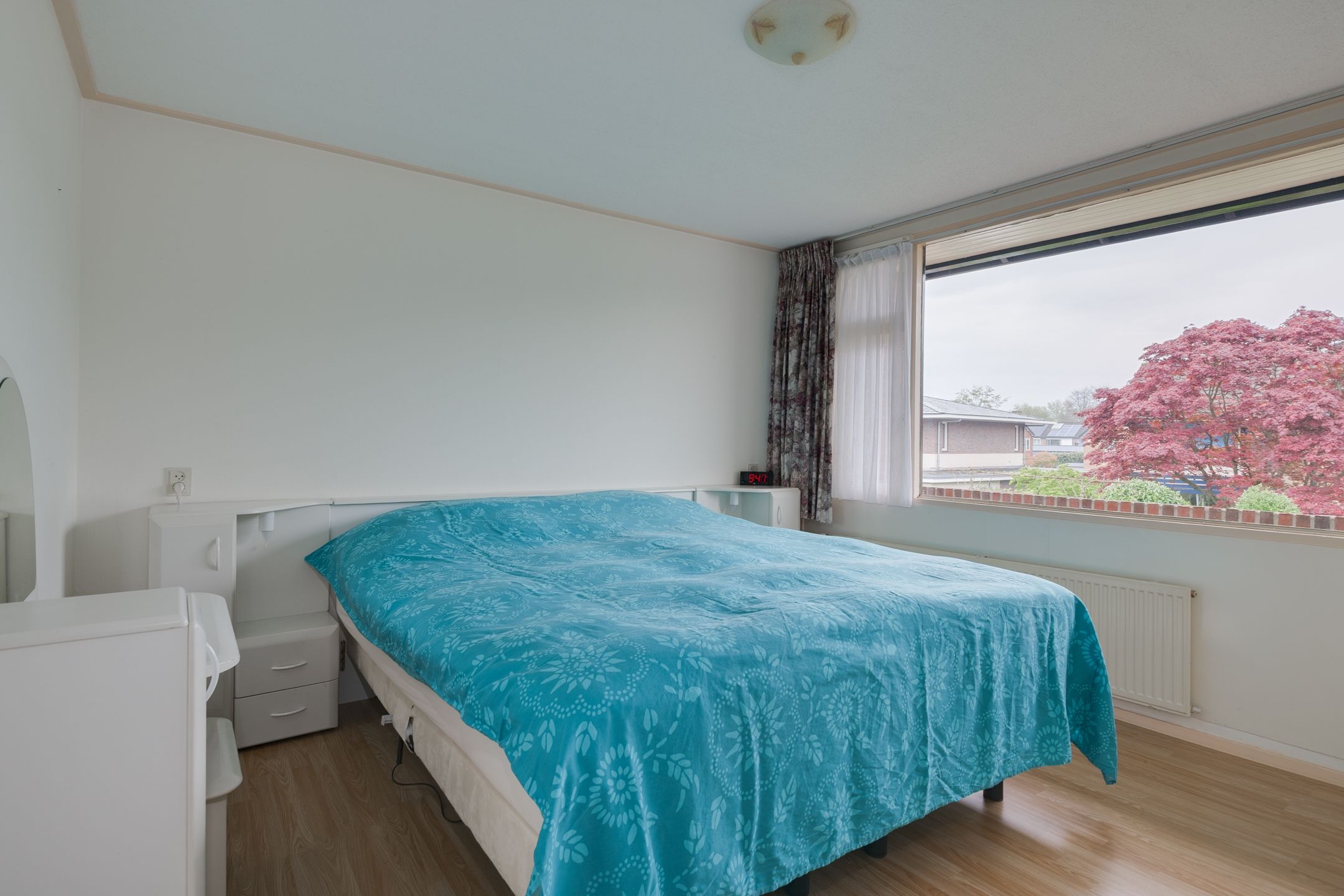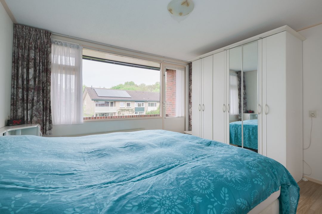 De hoofdslaapkamer bevindt zich aan de achterzijde van de woning en is heerlijk ruim en is voorzien van een vaste hang – en legkast. Deze kamer beschikt over een loggia. Het grote kozijn heeft een klap -/draairaam en deur die zorgt voor toegang naar loggia. Vanuit de slaapkamer heeft u een fraai uitzicht op de achtertuin en de groene omgeving.