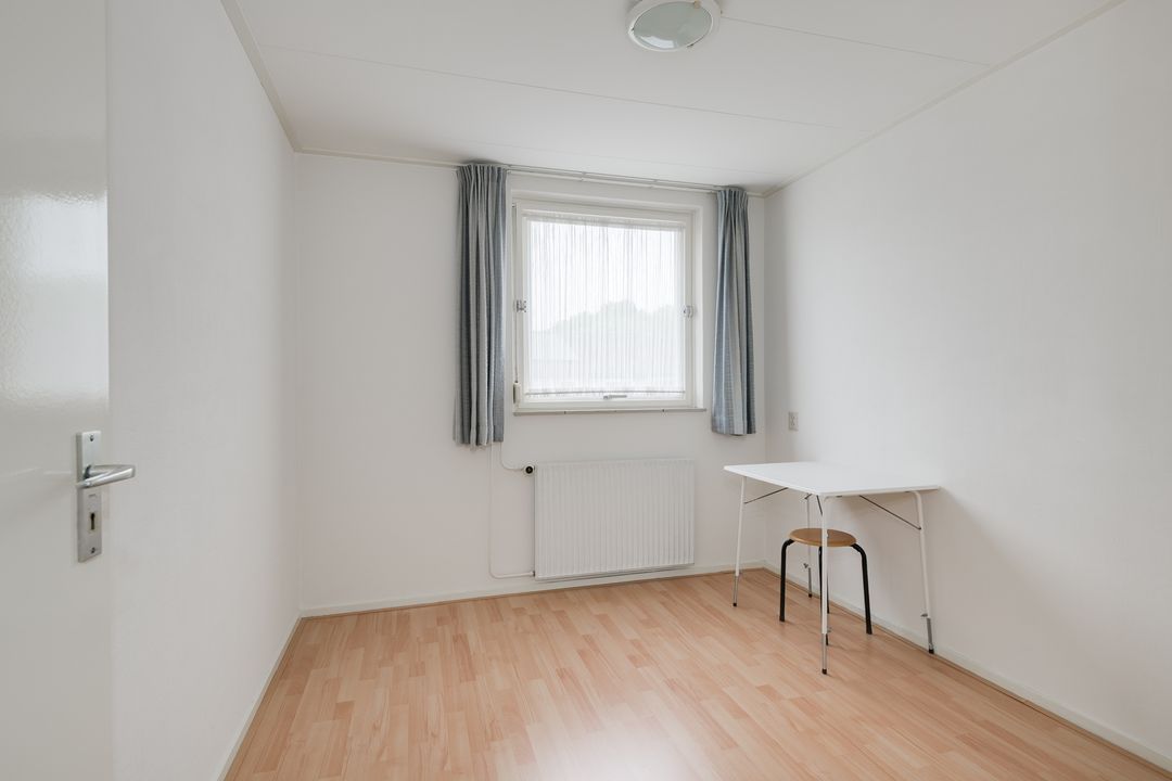 De derde slaapkamer bevindt zich aan de achterzijde van de woning en is voorzien van vaste hangkast. Deze wat kleinere kamer heeft een enkel tuimelraam en is perfect als kinder- of werkkamer. De neutrale afwerking maakt het eenvoudig om de ruimte naar eigen smaak in te richten.