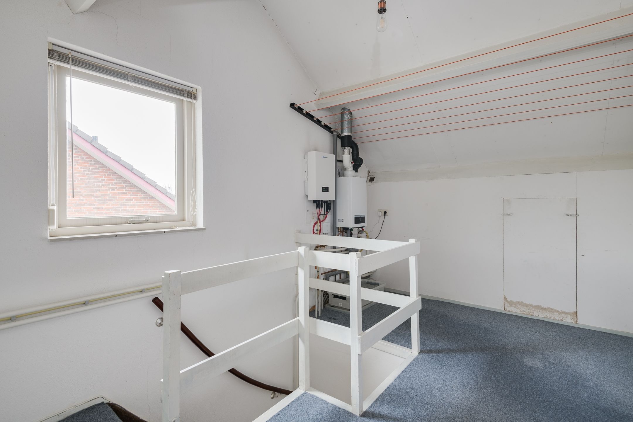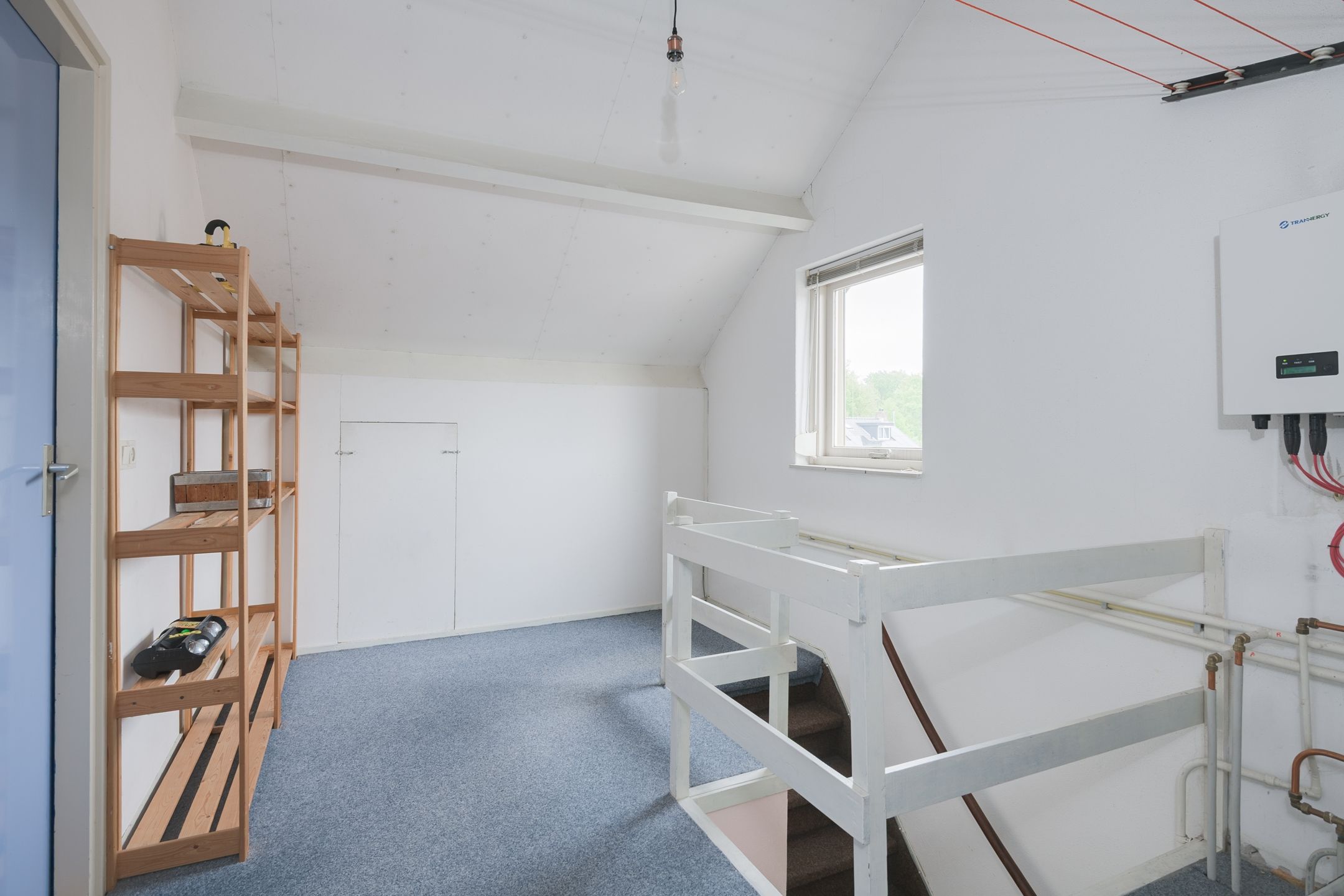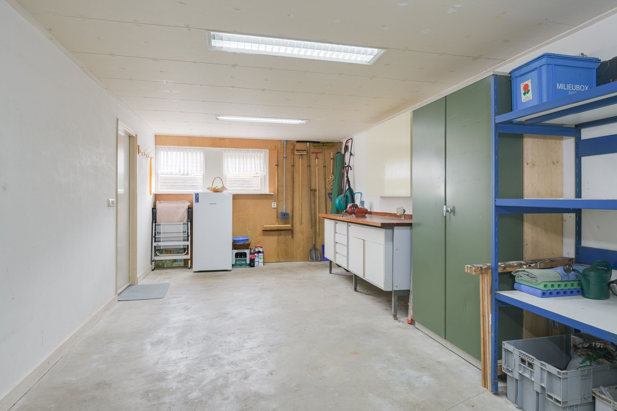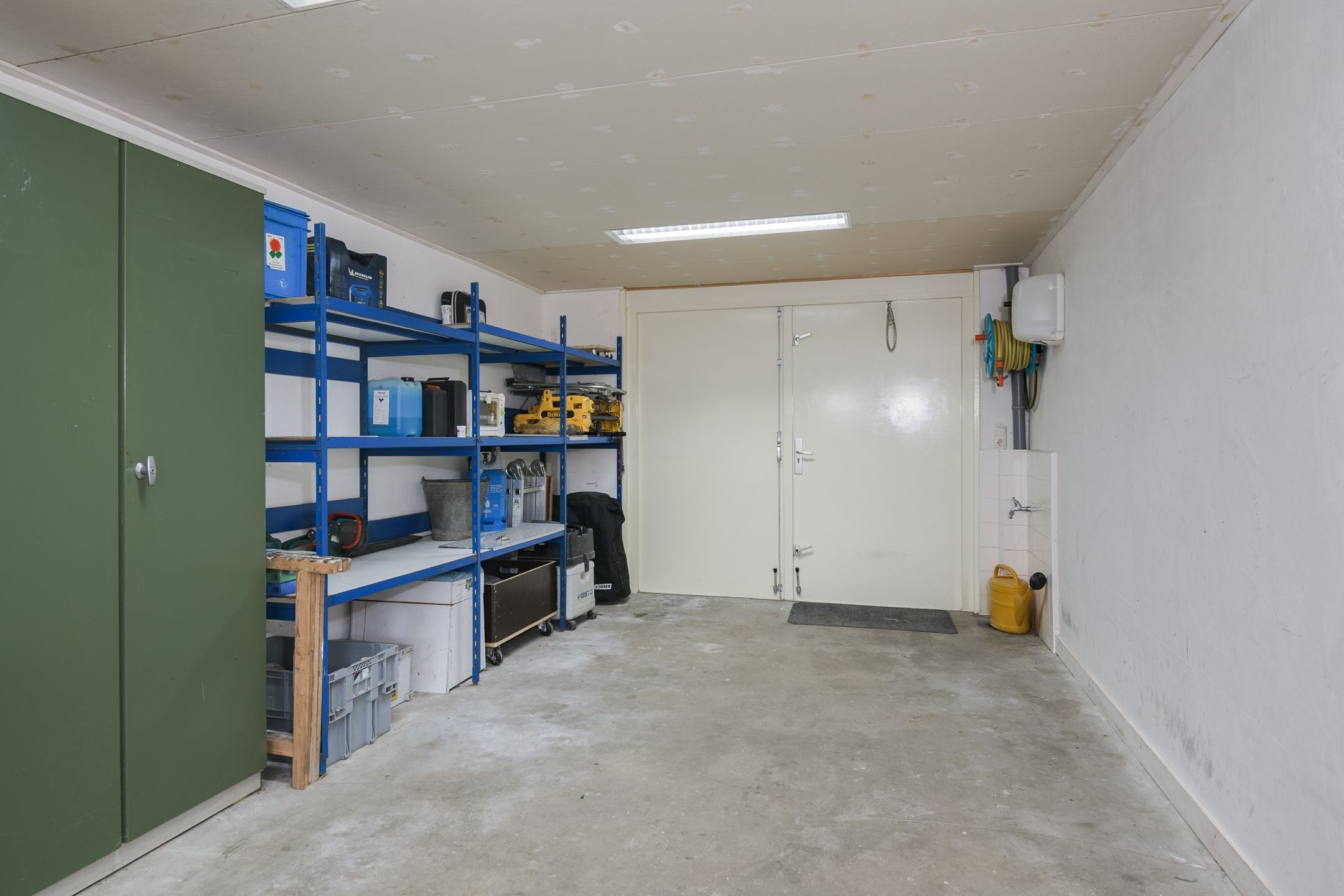 De aangebouwde garage biedt niet alleen plaats aan uw auto, maar ook aan allerlei tuinspullen en gereedschap. De garage heeft twee openslaande deuren naar de oprit en is voorzien van een koudwatervoorziening en een praktische betonnen vloer. De ruimte is praktisch ingedeeld met stellingen en bergruimte. Een ideale plek om uw fietsen, tuinmeubelen en andere spullen droog en veilig op te bergen. In/achter de garage is een vijfde slaapkamer te realiseren.