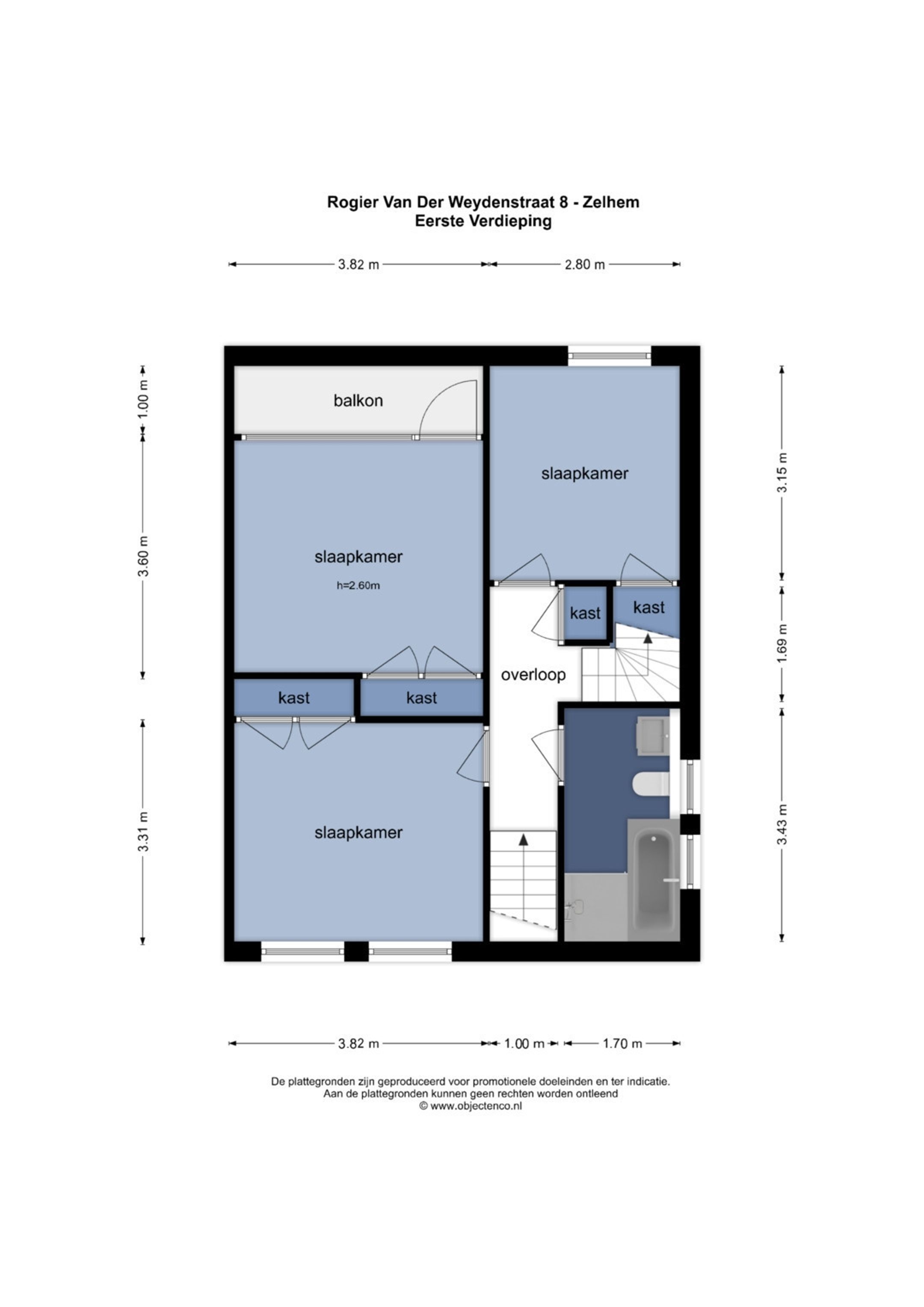 De overloop op de eerste verdieping heeft een vaste legkast en geeft toegang tot drie slaapkamers, vaste trap naar de tweede verdieping en de badkamer. Net als de begane grond profiteert ook deze verdieping van het duurzame klimaatsysteem dat zowel voor verkoeling in de zomer als aangename warmte in de winter zorgt. Een groot pluspunt is dat vrijwel alle ramen op deze verdieping zijn voorzien van rolluiken, wat zorgt voor extra isolatie, privacy en een betere nachtrust.