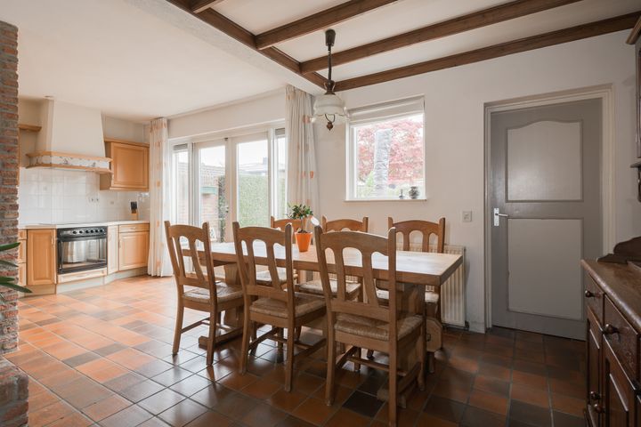 Grenzend aan de eetkamer vindt u de bijkeuken. Hier bevindt zich de witgoedaansluiting. De bijkeuken is tevens bereikbaar vanuit de garage en de achtertuin – ideaal voor het direct ophangen van de was aan uw droogmolen buiten.