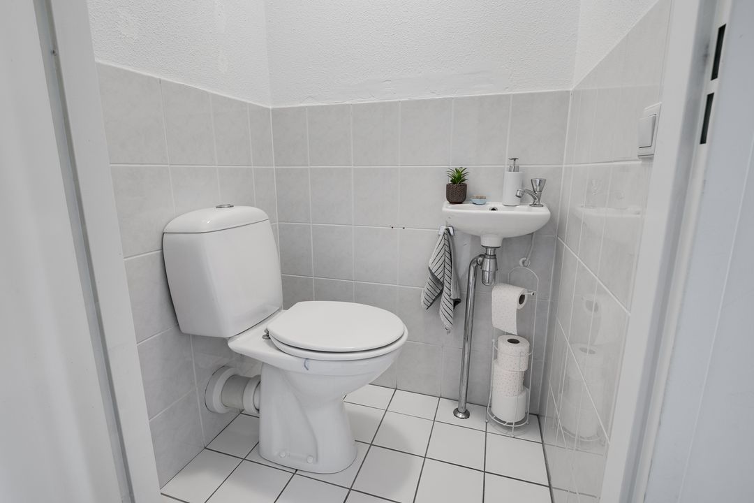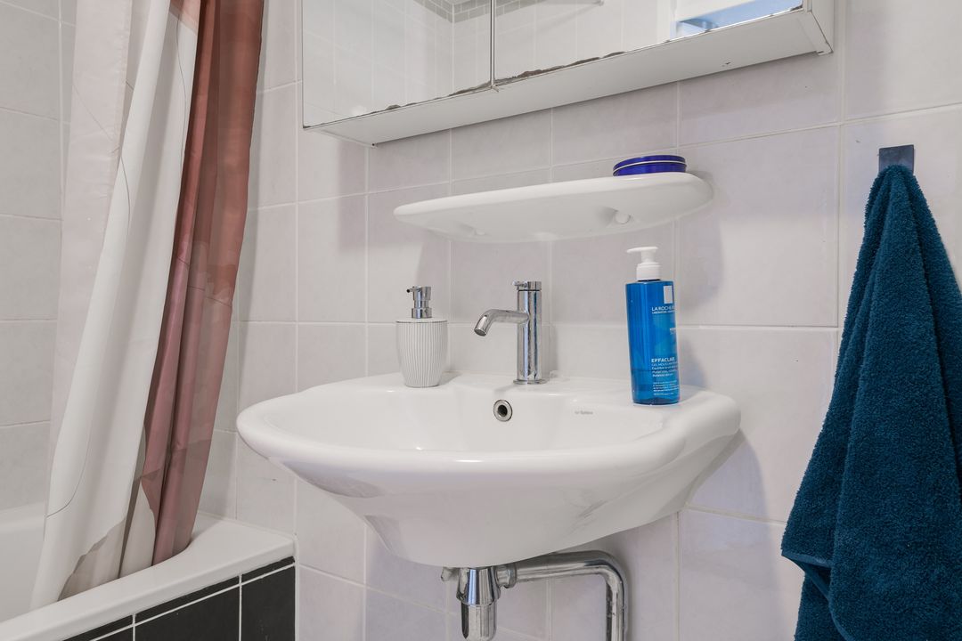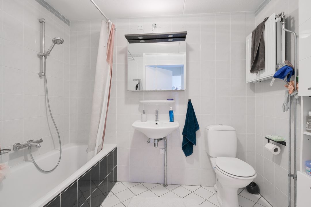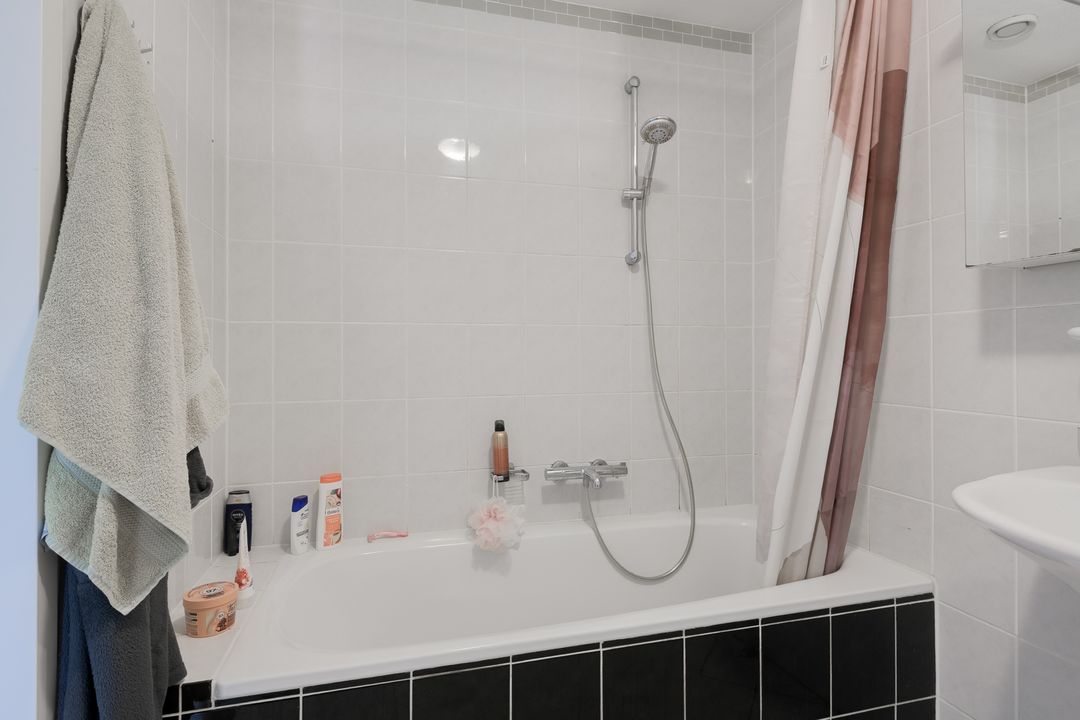 De badkamer is praktisch en licht ingericht met een frisse, witte afwerking. Even snel douchen of toch liever ontspannen in bad? Dankzij de combinatie van bad en douche kan het allebei. Verder is er een wastafel en een tweede toilet aanwezig.
