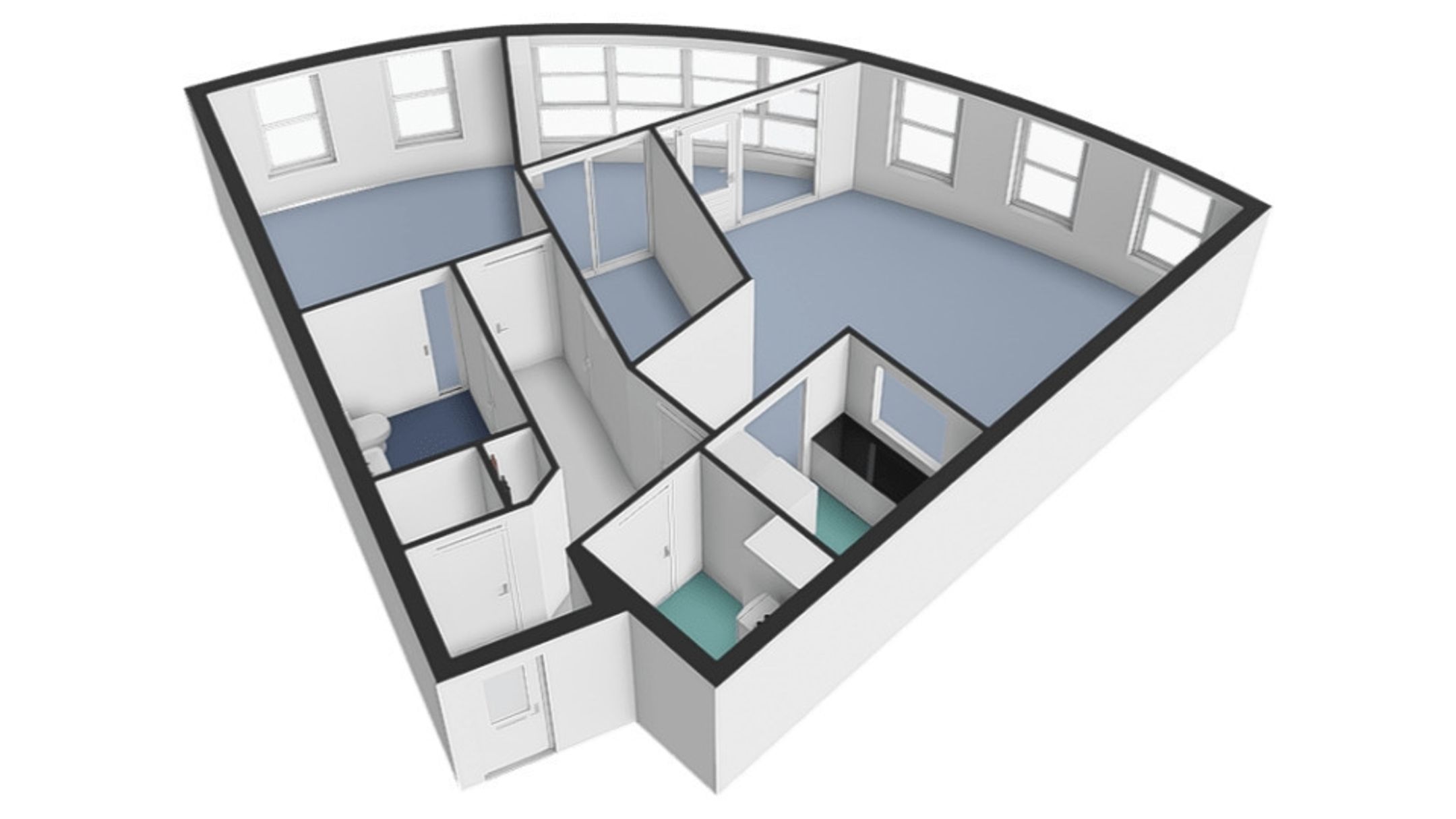 • Appartement op de eerste verdieping in het ronde complex ‘Het Bastion’