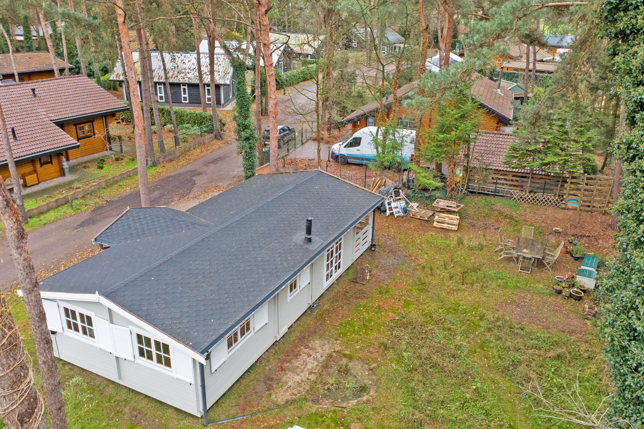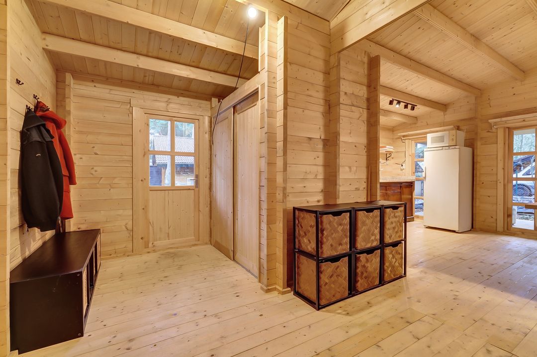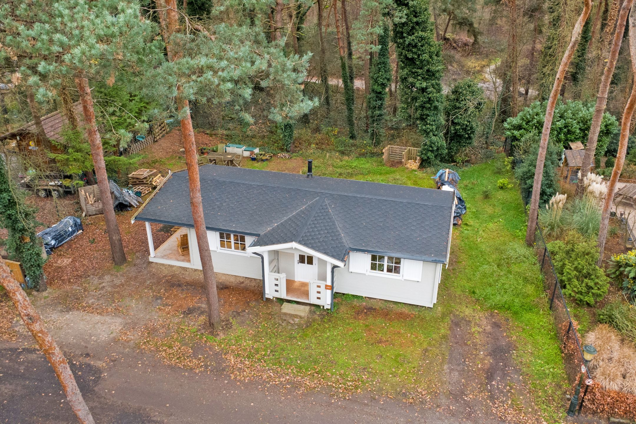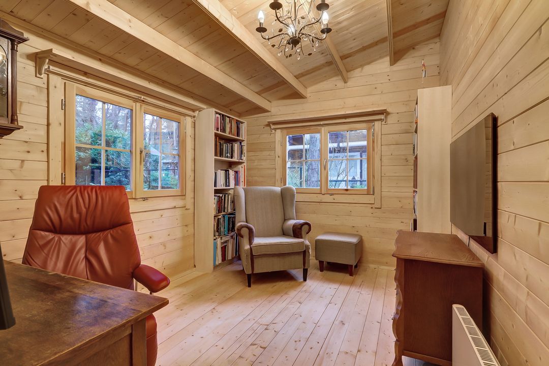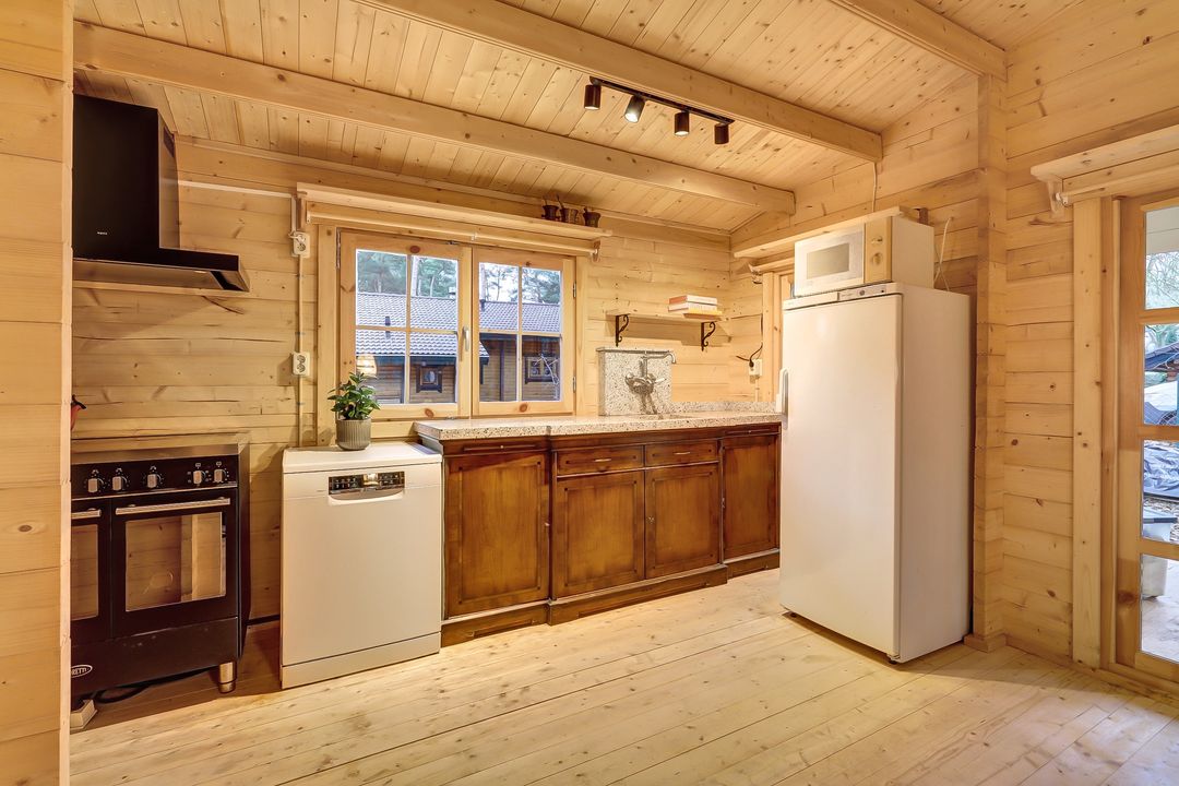 Stap het park op en voel hoe de rust je langzaam omarmt. Tussen de hoge bomen verschijnt een charmant, typisch Zweeds huisje gebouwd in november 2024 met een warme landelijke uitstraling. Met zijn gezellige veranda, vele ramen met roedes, openslaande deuren en buitenluiken, alles recent geschilderd met Zweedse verf, ademt het huisje pure Scandinavische sfeer. Binnen geniet je van een prachtige keuken, twee slaapkamers en een moderne badkamer. Een uniek, recent gebouwd plekje midden in het bos, klaar om direct verliefd op te worden. Rondom ligt een tuin die bijna vanzelf overloopt in het bos: natuurlijk, rustgevend en vol leven. Hier ruik je het mos, hoor je vogels tussen de struiken ritselen en ontdek je de eerste contouren van een toekomstige permacultuurtuin. Een plek waar wonen, ademen en buiten zijn in elkaar overvloeien. Hier begint het vertragen al voordat je binnen bent!
