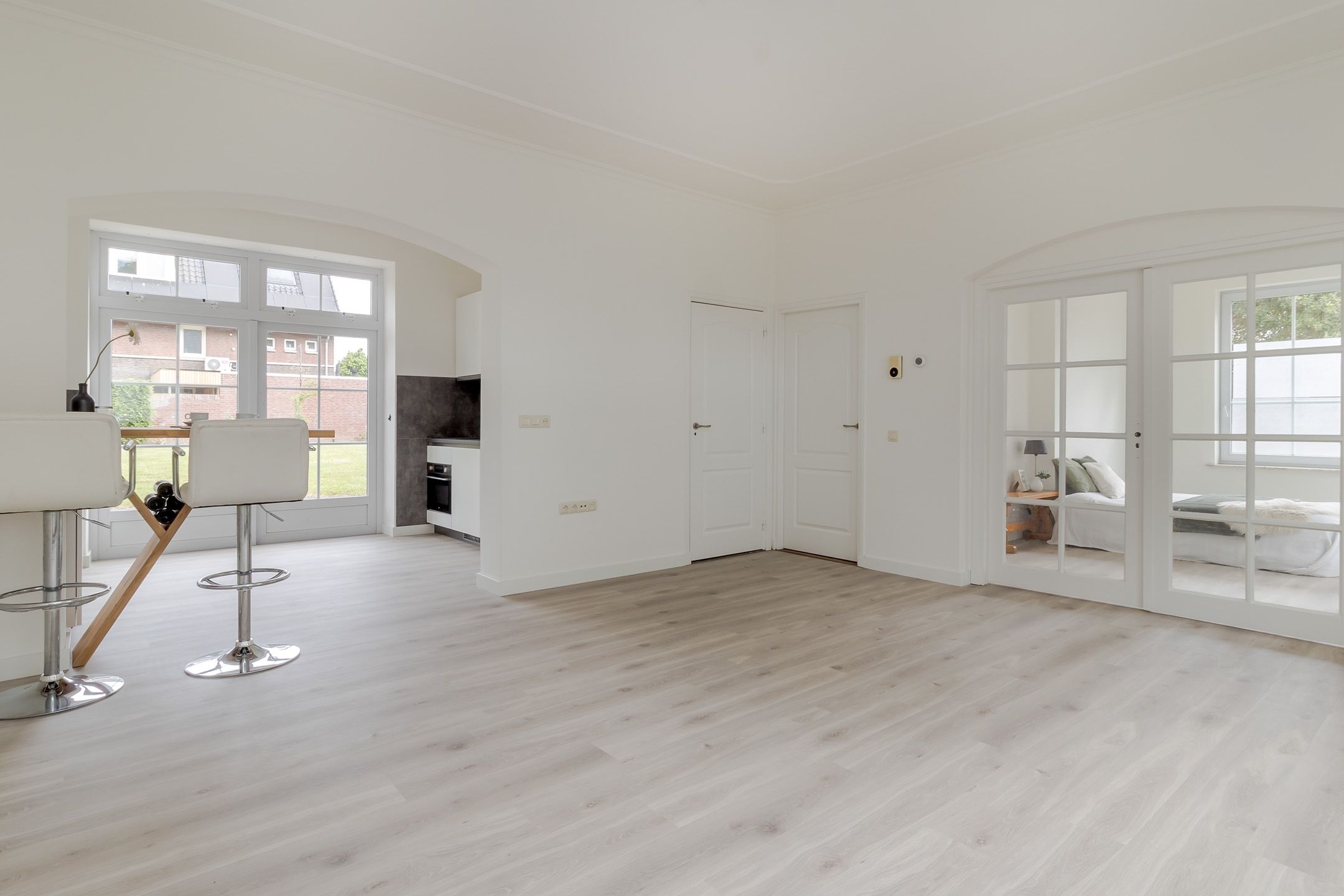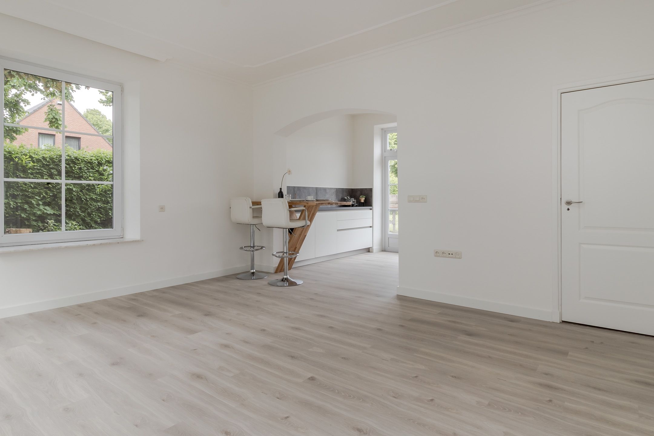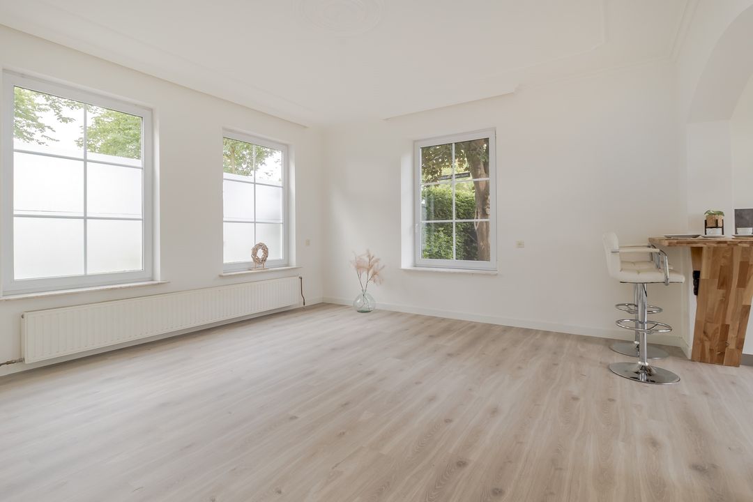 TE HUUR Compleet gerenoveerd begane grond appartement met garage en grote tuin en garage.