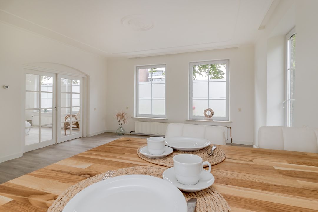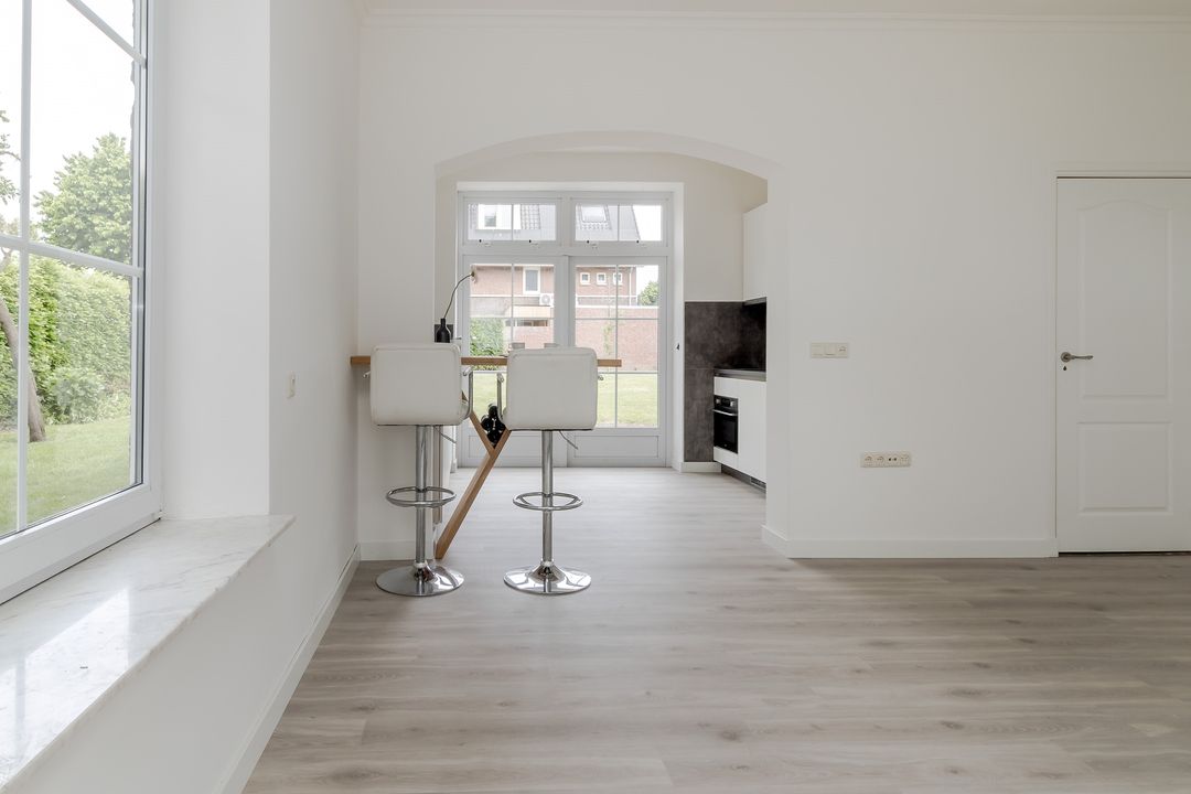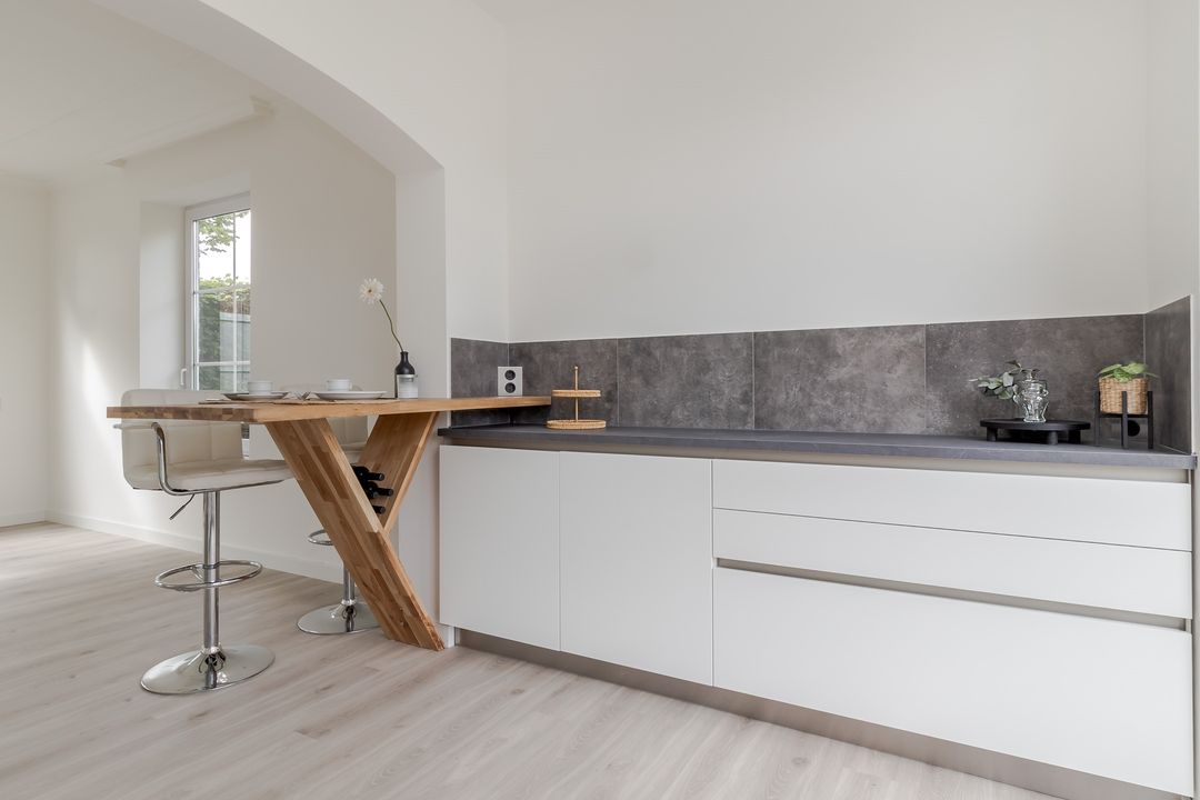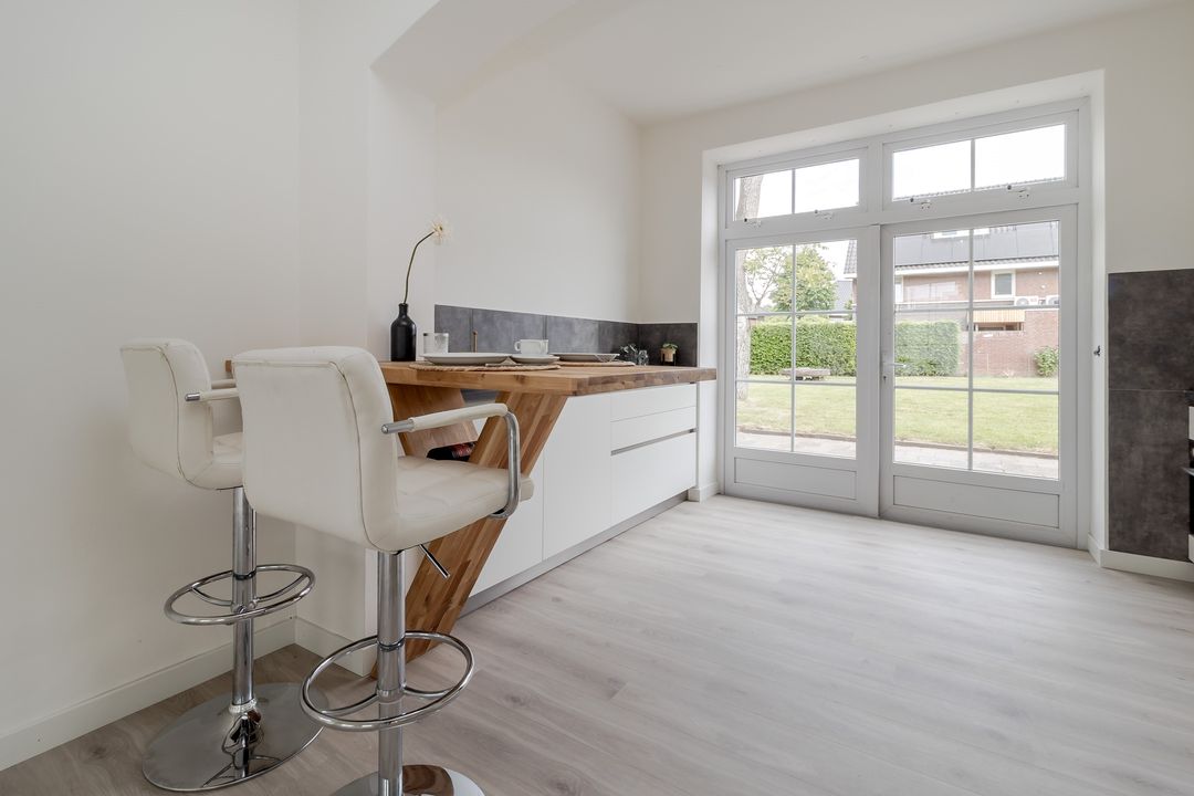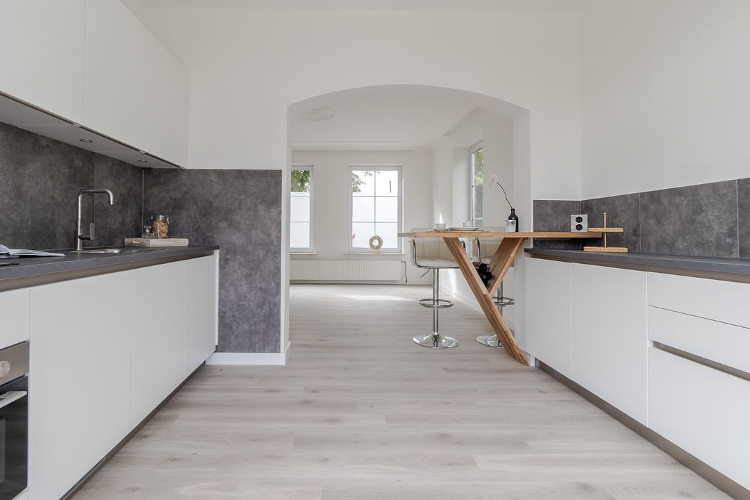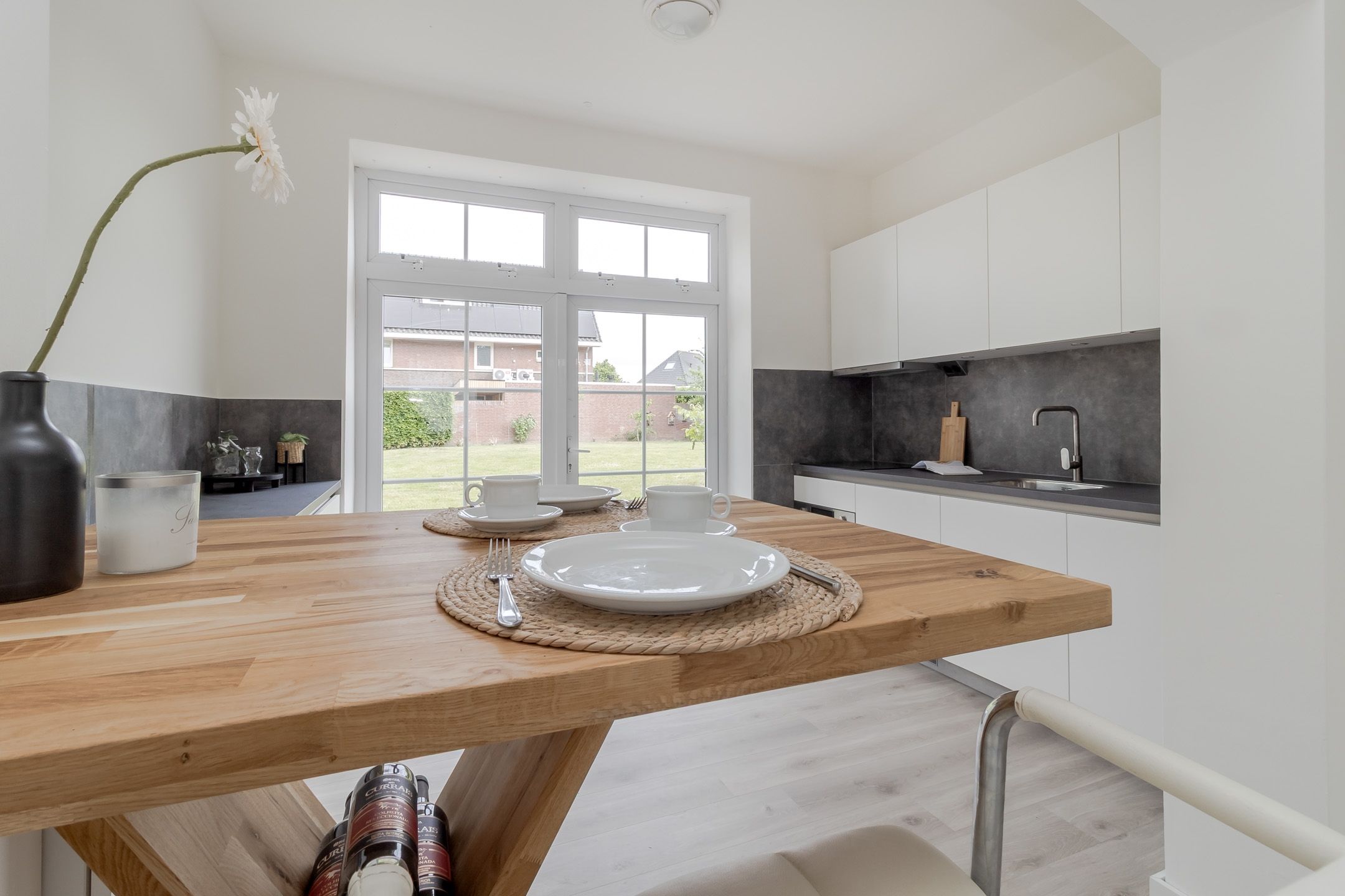 De keuken is voorzien van openslaande tuindeuren met directe toegang tot het terras en de riante tuin.
