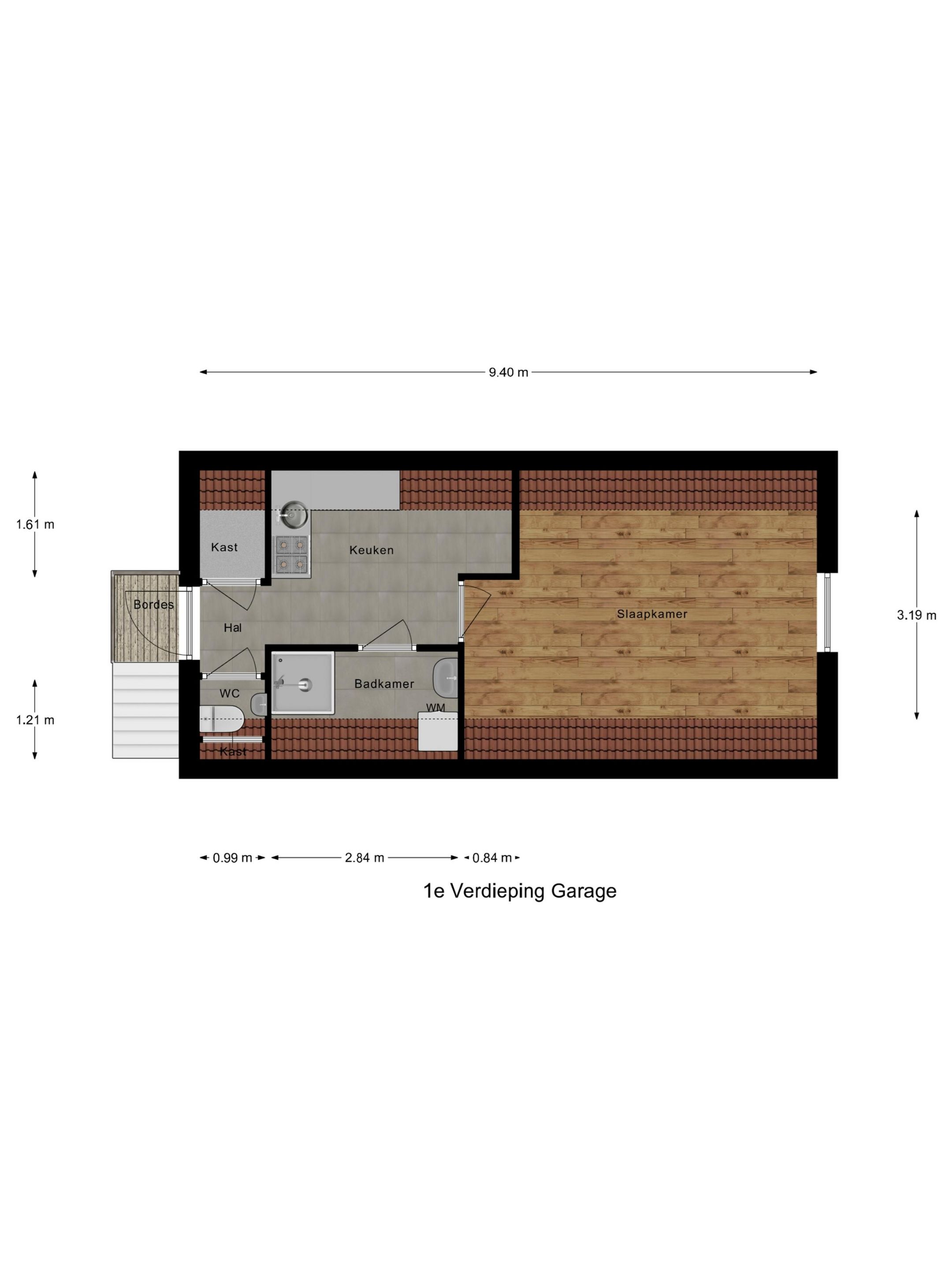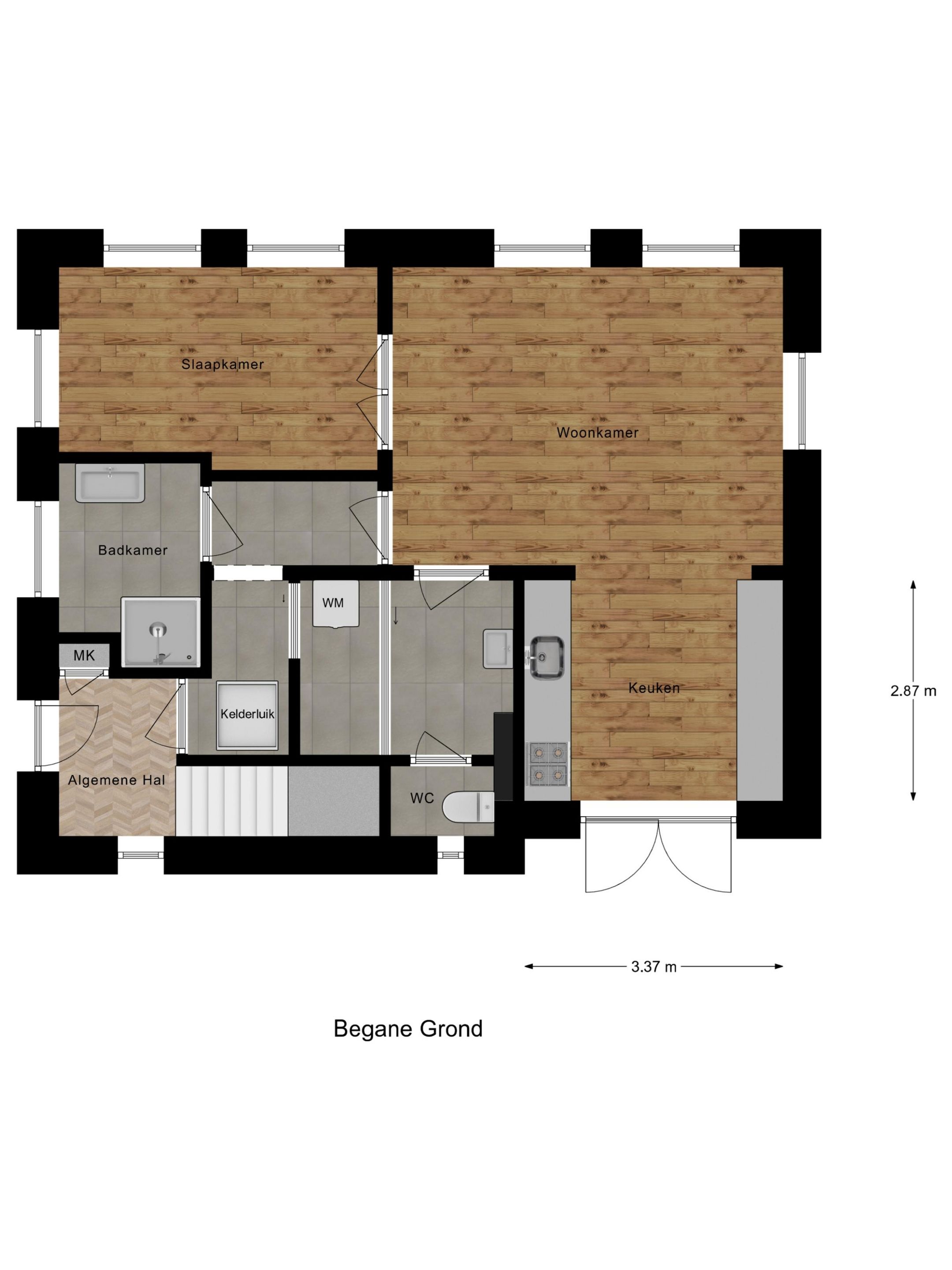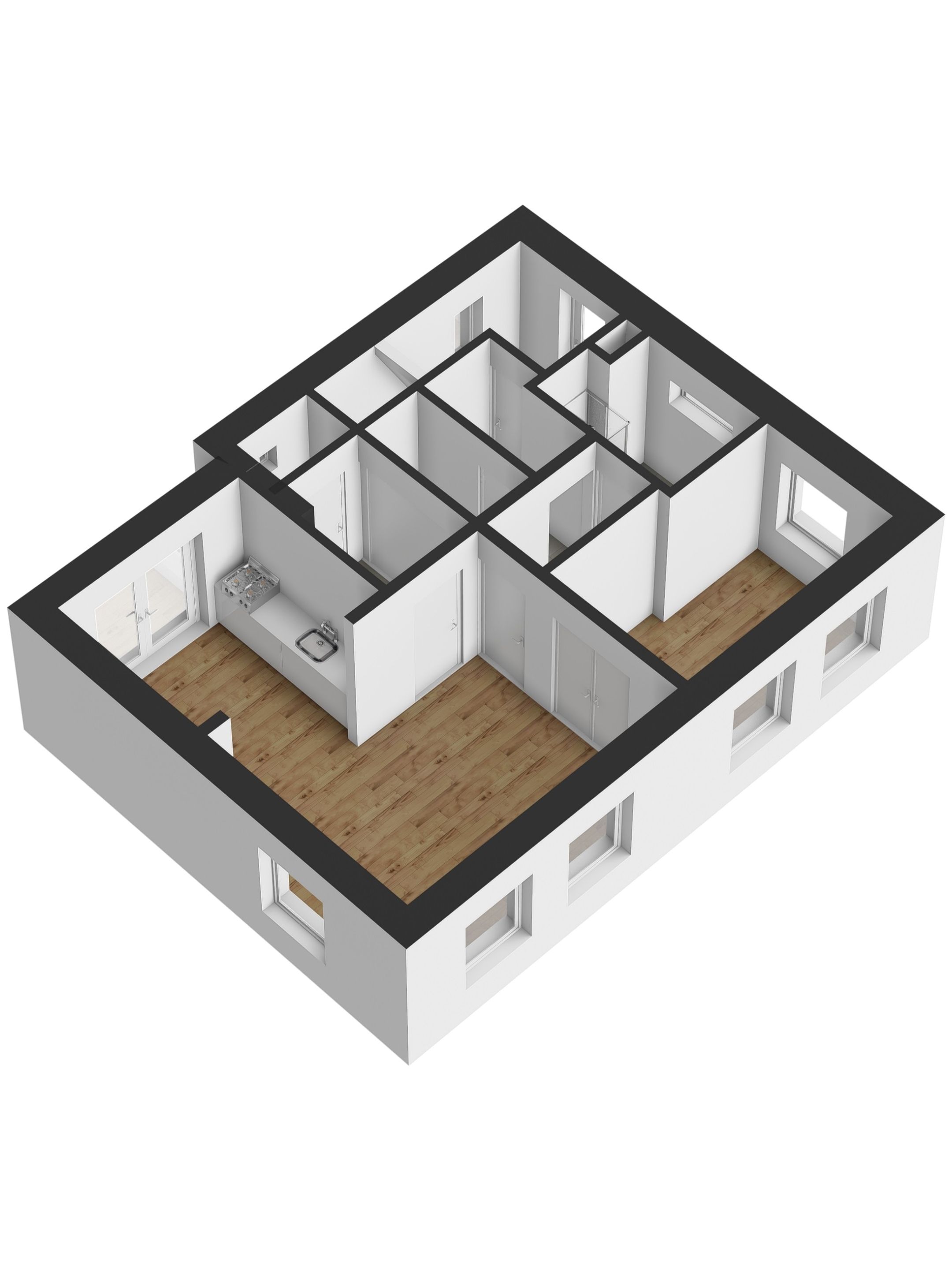 Entree met toegang tot de keuken, bergkast, separaat toilet met fonteintje, badkamer en 1 ruime slaapkamer
