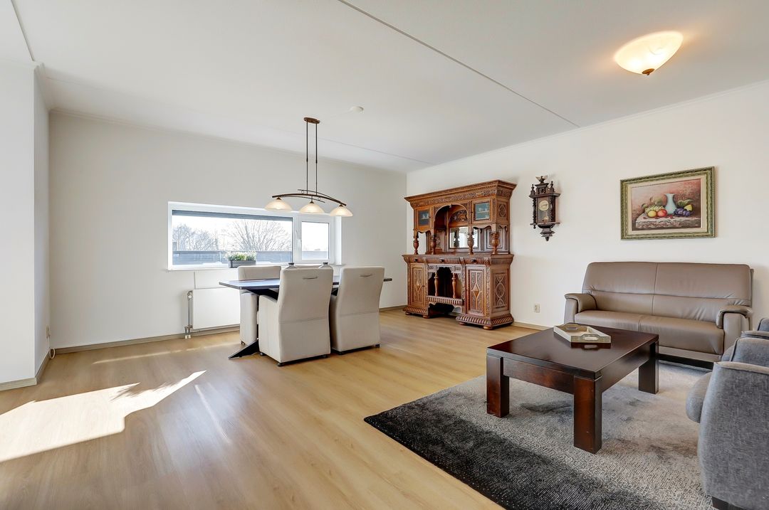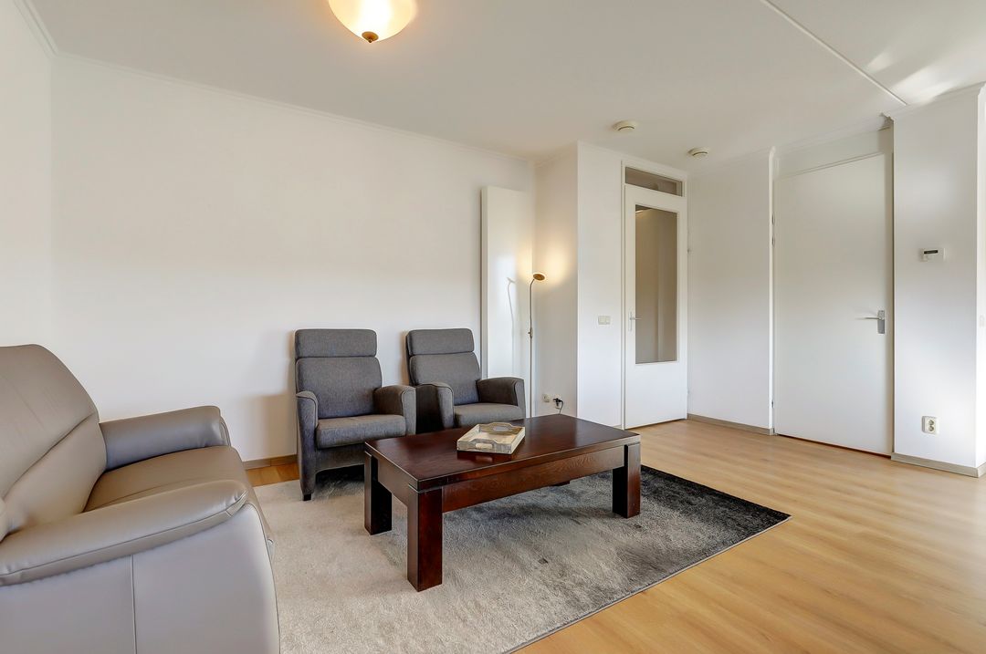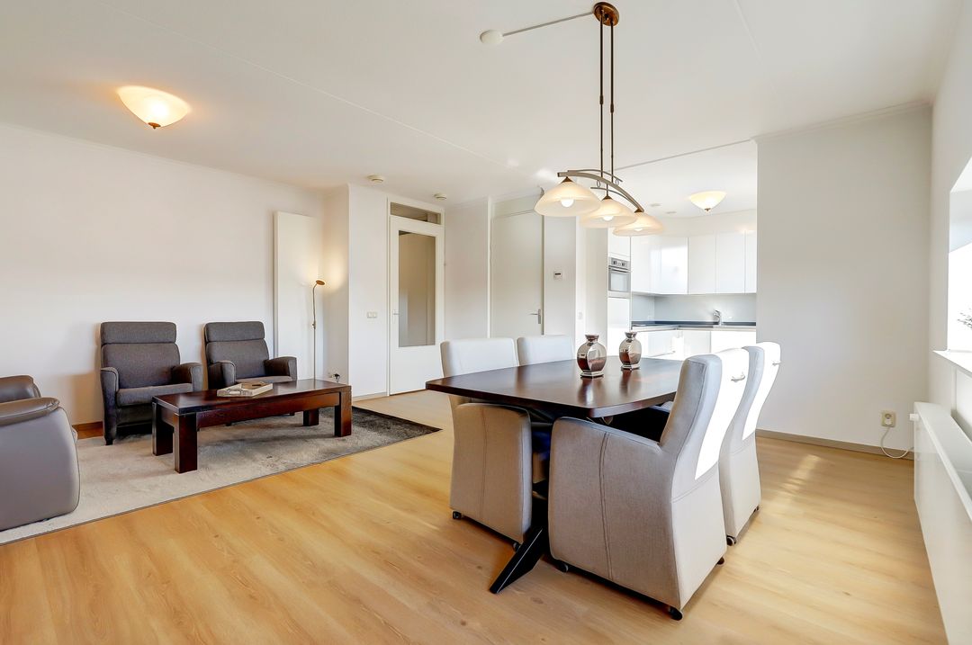 In de gezellige, verrassend ruime woonkamer zit aan de balkonzijde een langwerpig raam met een kleiner draaikiepraampje. Door het ruime formaat kun je de kamer op verschillende manieren inrichten en er dus voor kiezen om de eethoek direct naast de open keuken te plaatsen of als je liever vanaf de bank naar buiten kijkt is dat ook mogelijk.