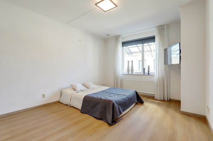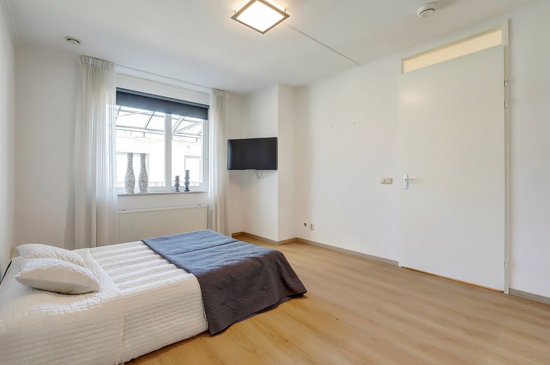 Beide slaapkamers bevinden zich aan de galerijzijde van het appartement. De grootste slaapkamer beschikt over twee vaste ramen de tweede slaapkamer heeft 1 raam. De laminaatvloer is vanuit de ontvangsthal drempelloos doorgelegd en ook hier bevatten de wanden stucwerk. De grootste slaapkamer heeft tevens een televisieaansluiting.