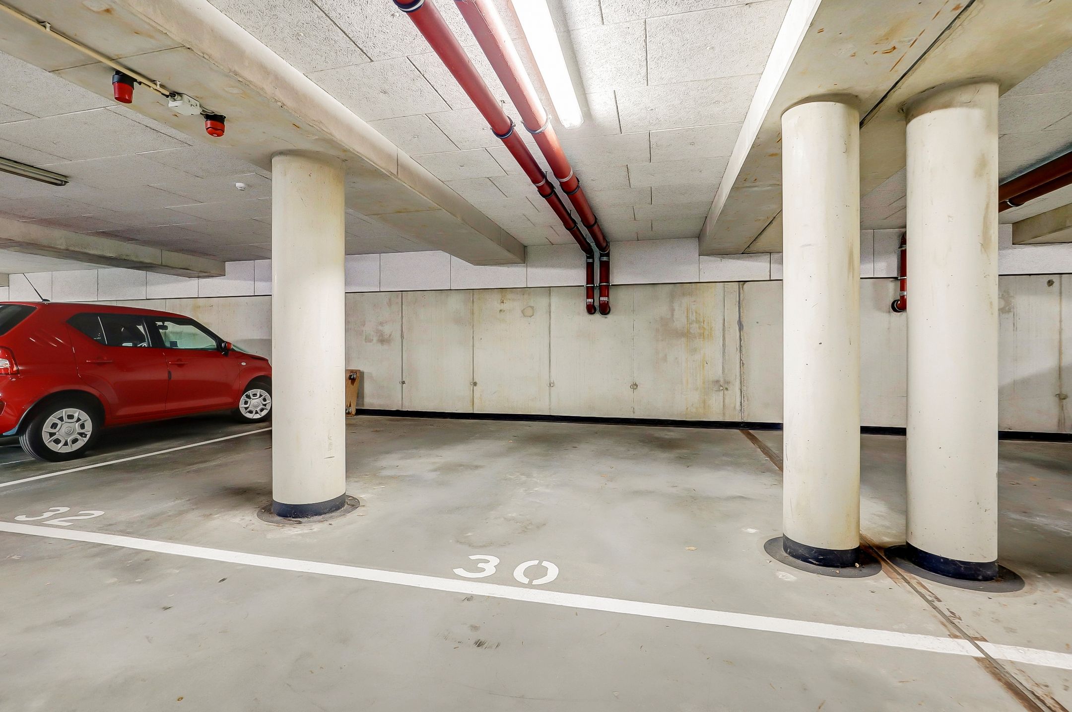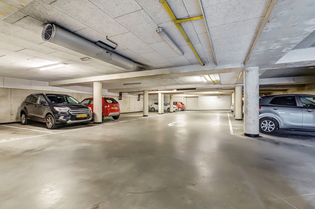 De parkeergarage is zowel via de voor- als achterzijde van het gebouw bereikbaar en bevat een elektrisch bediende toegangspoort. Intern is de garage bereikbaar via de lift. Per appartement is er één genummerde parkeerplaats aanwezig en een afsluitbare berging voor bijvoorbeeld fietsen.
