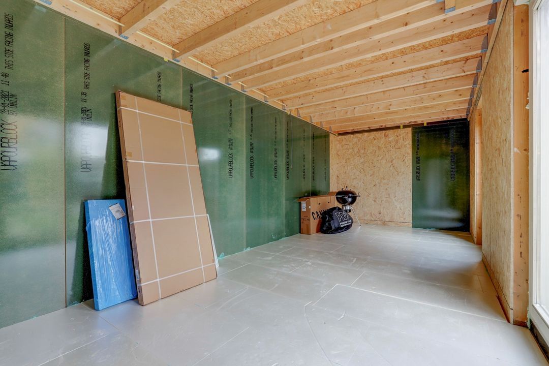 De multifunctionele ruimte is zo goed als klaar. Je moet zelf nog een vloer leggen, gipswanden tegen de muren plaatsen en alles afwerken. Je kunt deze ruimte dus nog helemaal vrij indelen. Het was de bedoeling om hier een vierde slaapkamer te realiseren met openslaande deuren naar de tuin en een achterliggend kantoor met ook een eigen ingang naar de tuin maar het is nu aan jou wat je hier van wenst te maken!
