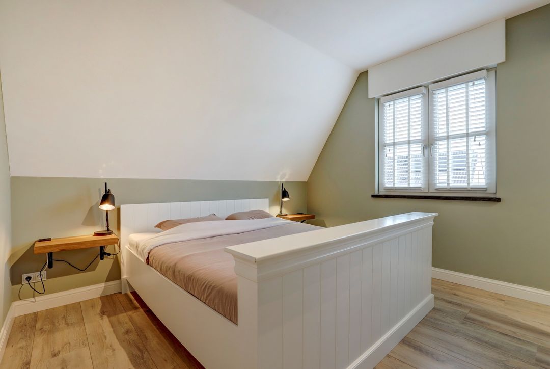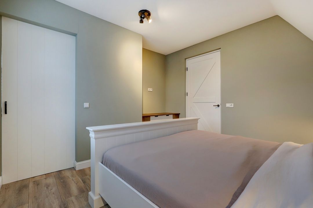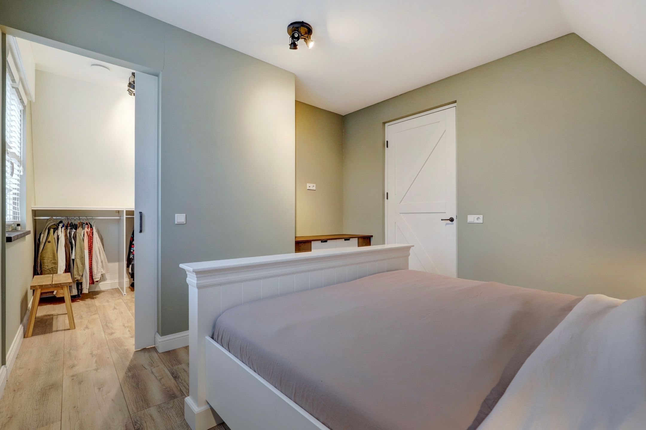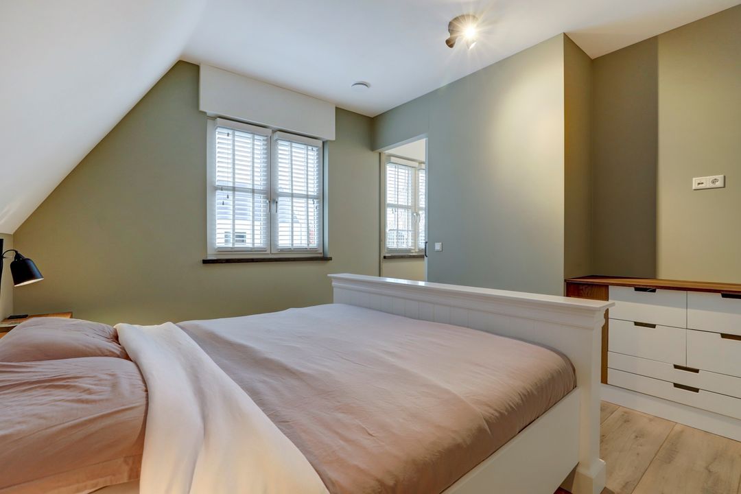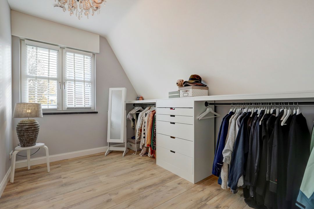 Aan de voorkant van de woning bevinden zich twee slaapkamers met ieder een draaikiepraam met elektrisch te bedienen rolluik. De wanden zijn geverfd in rustige neutrale kleuren. De grote slaapkamer ligt aan de achterkant van de woning en ook deze kamer heeft twee draaikiepramen met elektrische rolluiken. Via een schuifdeur kom je in de grote inloopkast! Hier heb je meer dan genoeg ruimte om je kleding uit te stallen op de legplanken of de hangrekken.