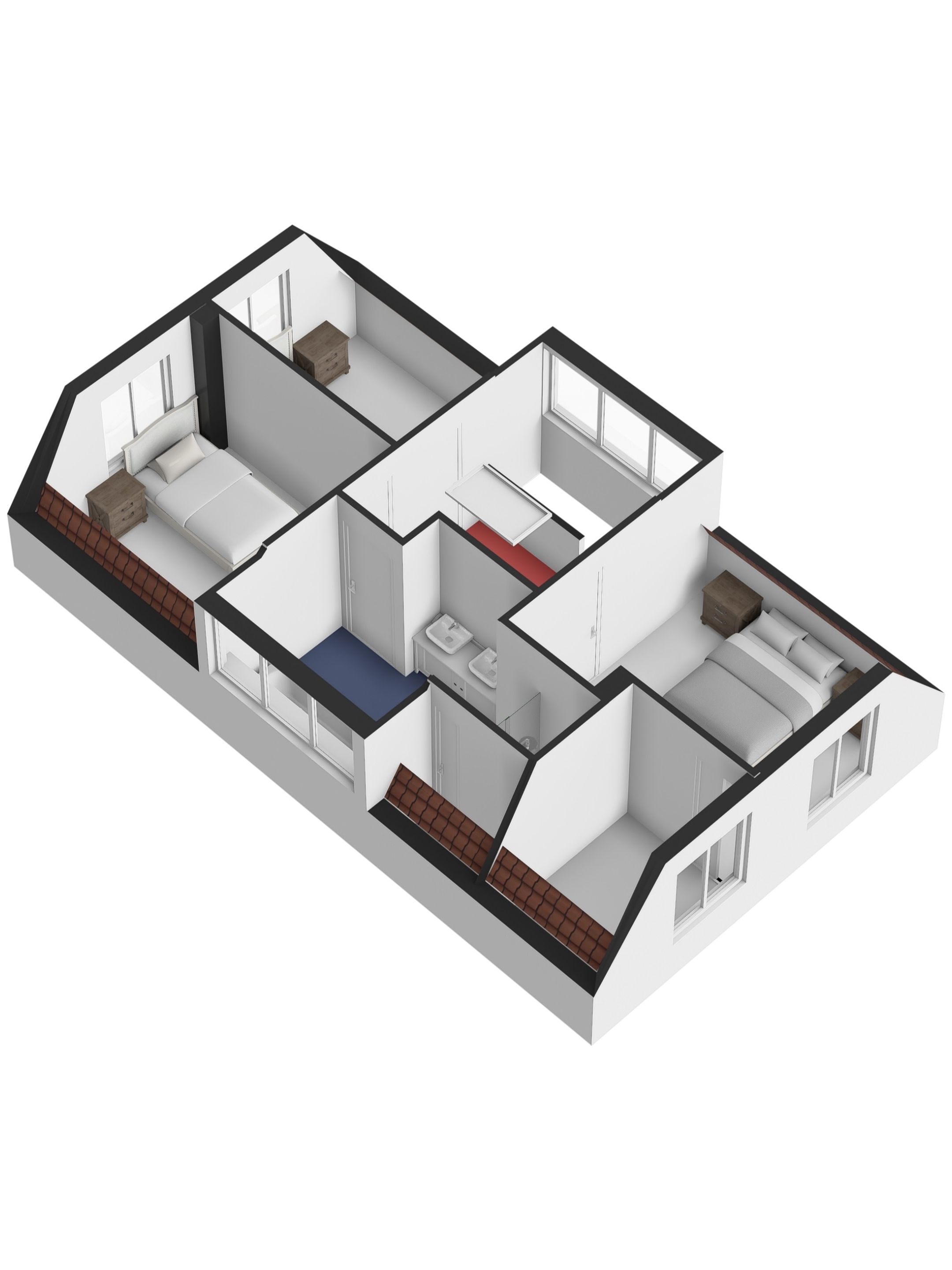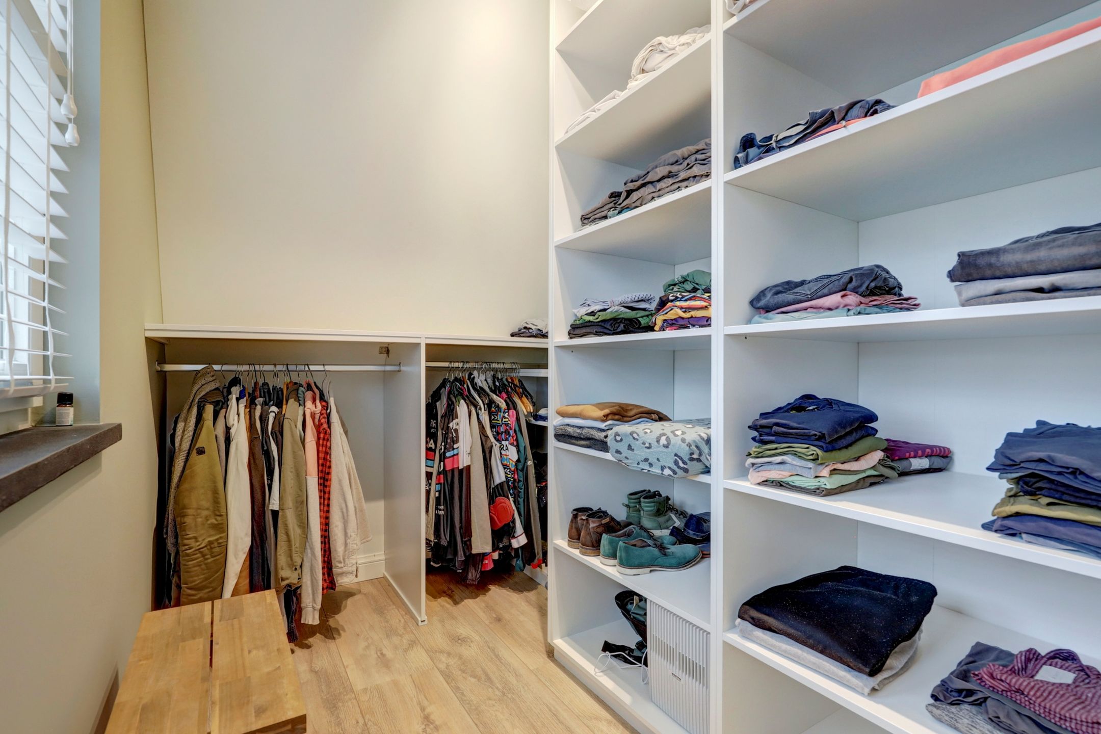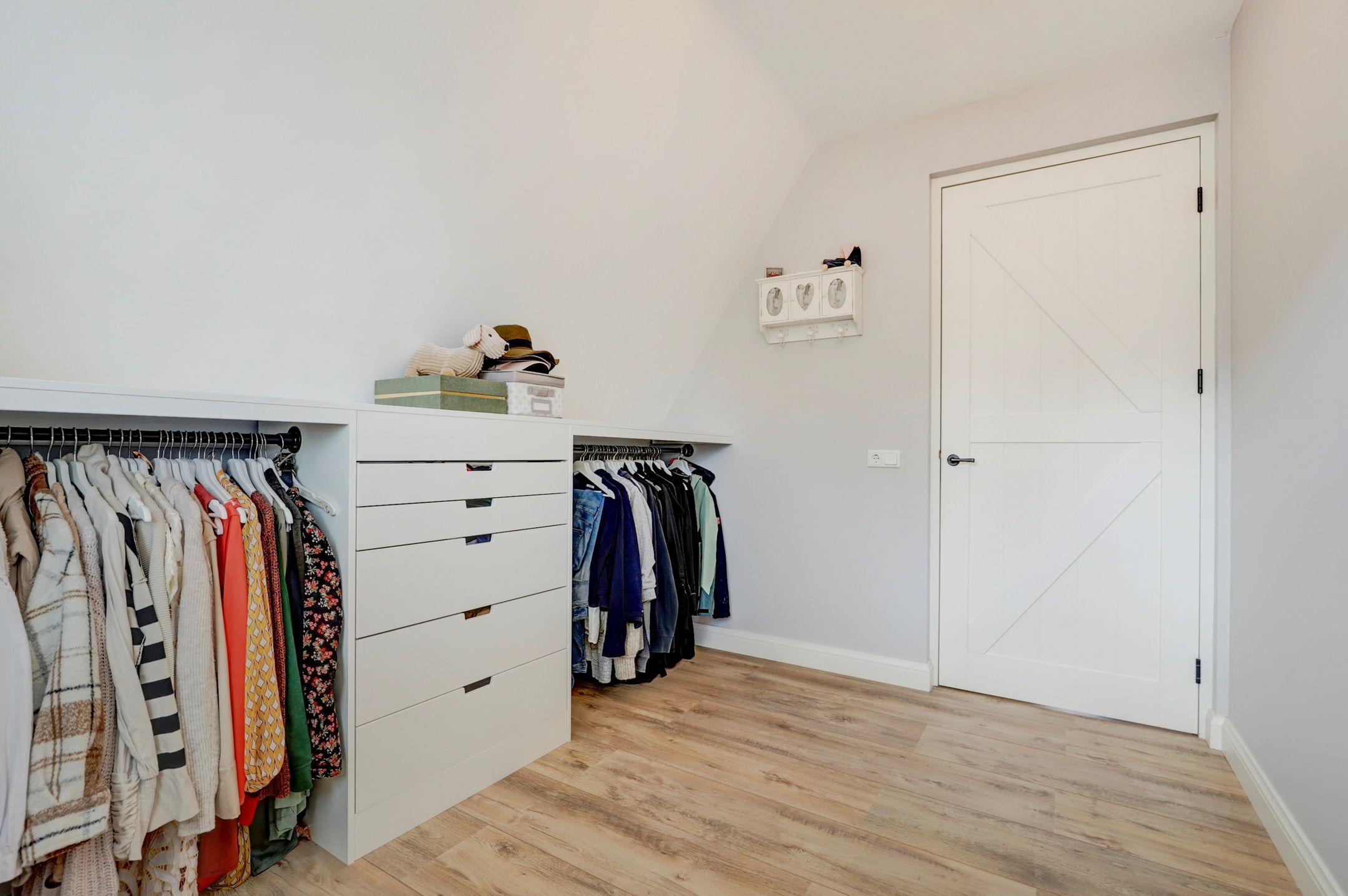 Aan de voorkant van de woning bevinden zich twee slaapkamers met ieder een draaikiepraam met elektrisch te bedienen rolluik. De wanden zijn geverfd in rustige neutrale kleuren. De grote slaapkamer ligt aan de achterkant van de woning en ook deze kamer heeft twee draaikiepramen met elektrische rolluiken. Via een schuifdeur kom je in de grote inloopkast! Hier heb je meer dan genoeg ruimte om je kleding uit te stallen op de legplanken of de hangrekken.