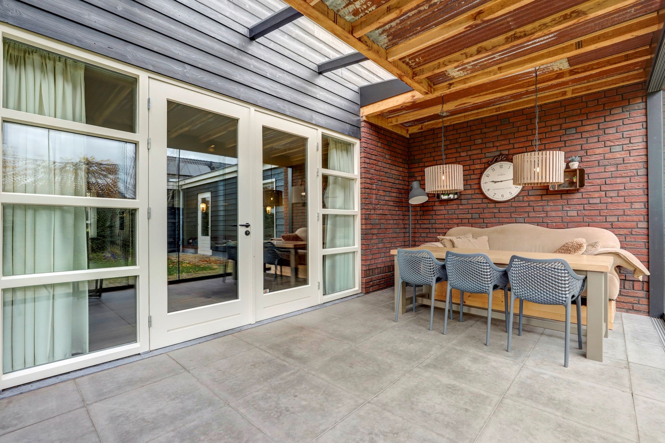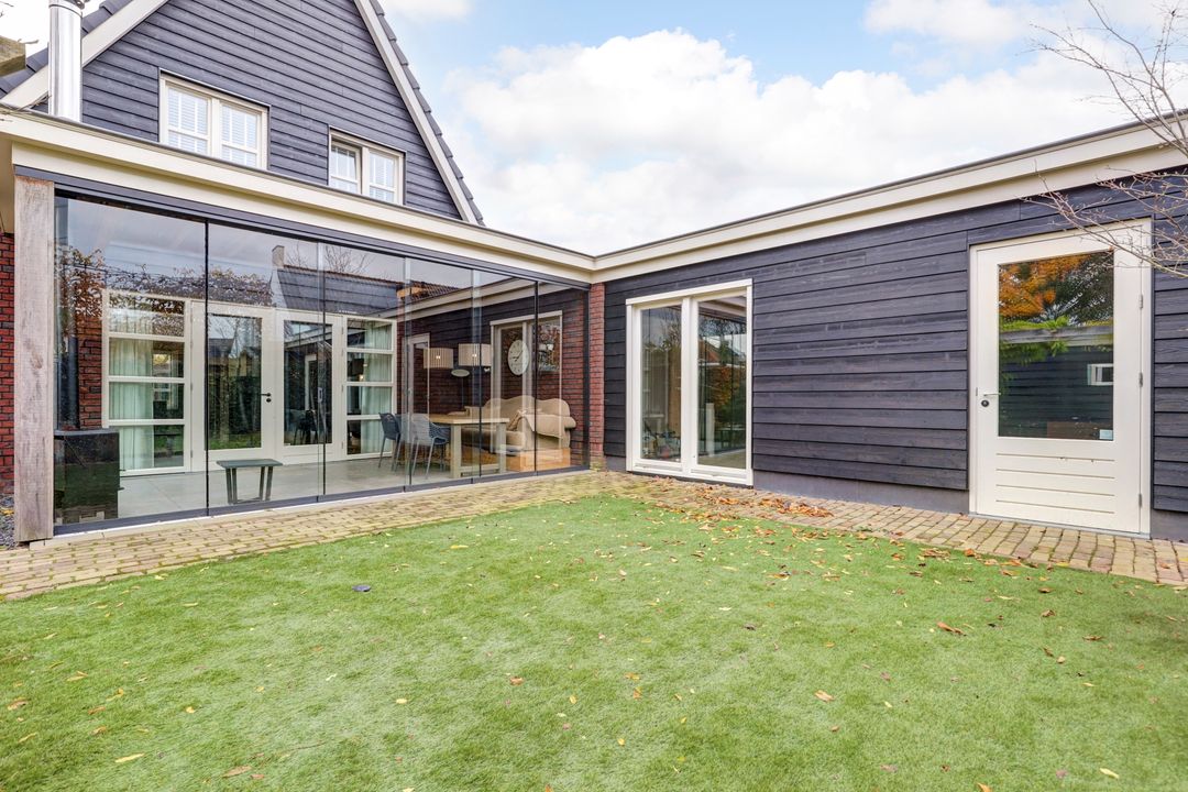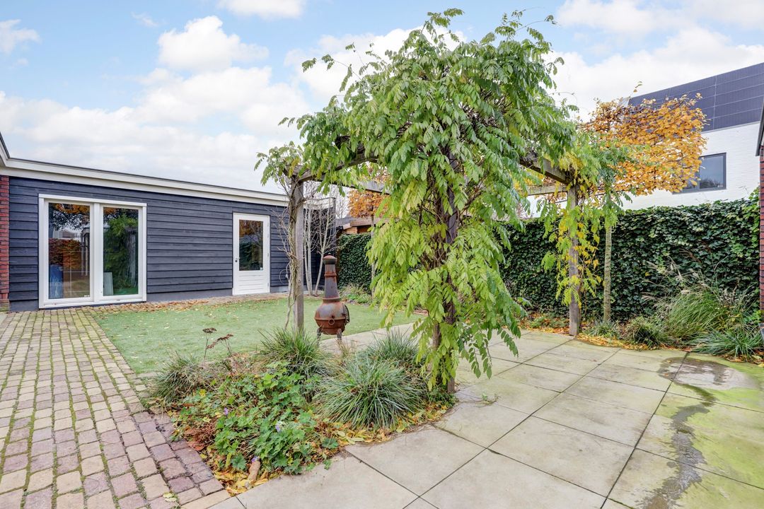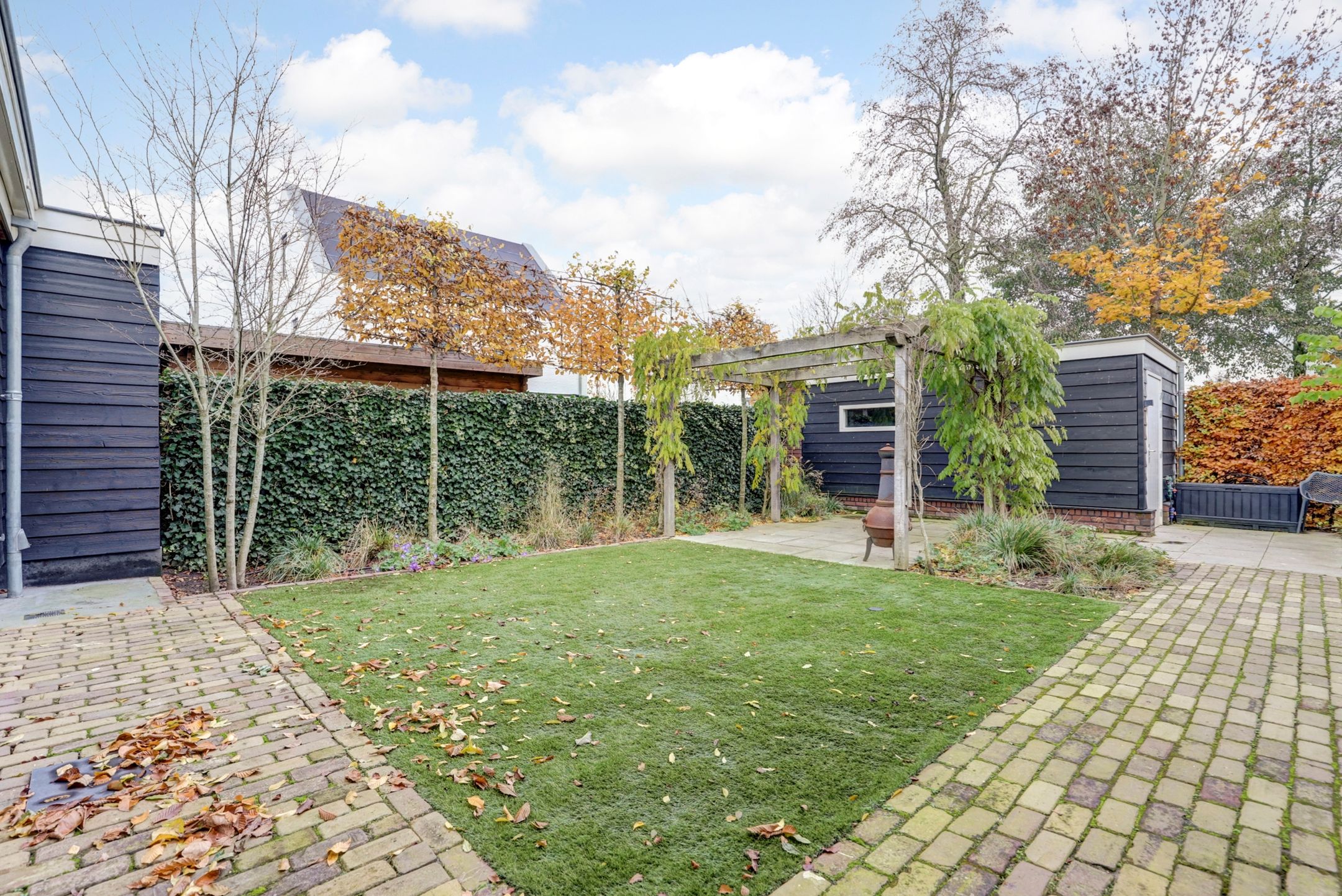 In deze achtertuin heb je geen last van inkijk! Doordat de woning op de hoek van de straat ligt was de inkijk al minimaal en achterin de tuin staan enkele leibomen die voor nog meer privacy zorgen. In de zomer schuif je de glazen panelen van de tuinkamer helemaal open zodat het gelijk fungeert als een overdekt terras. Zelfs als het nog wat fris is kun je hier al lekker bij de houtkachel zitten. De tuin is mooi groen aangelegd maar makkelijk te onderhouden vanwege het kunstgras, de siergrassen in de borders en een druppelsysteem dat aangesloten is op de grondwaterpomp en de tuin zo mooi groen houdt. Achterin de tuin ligt een grote berging die geheel geïsoleerd is en voorzien van elektra. De tuin heeft een vrije achterom aan de zijkant van de woning en is geheel omheind. Er zijn diverse stopcontacten aanwezig, verlichting en een buitenkraan.
