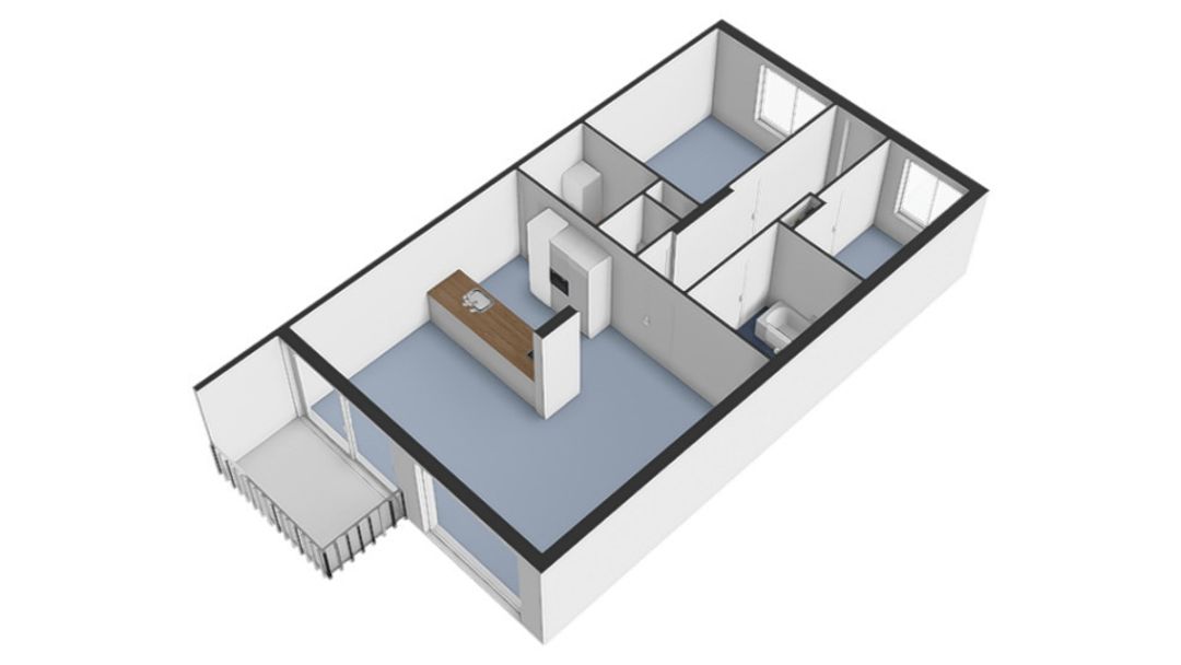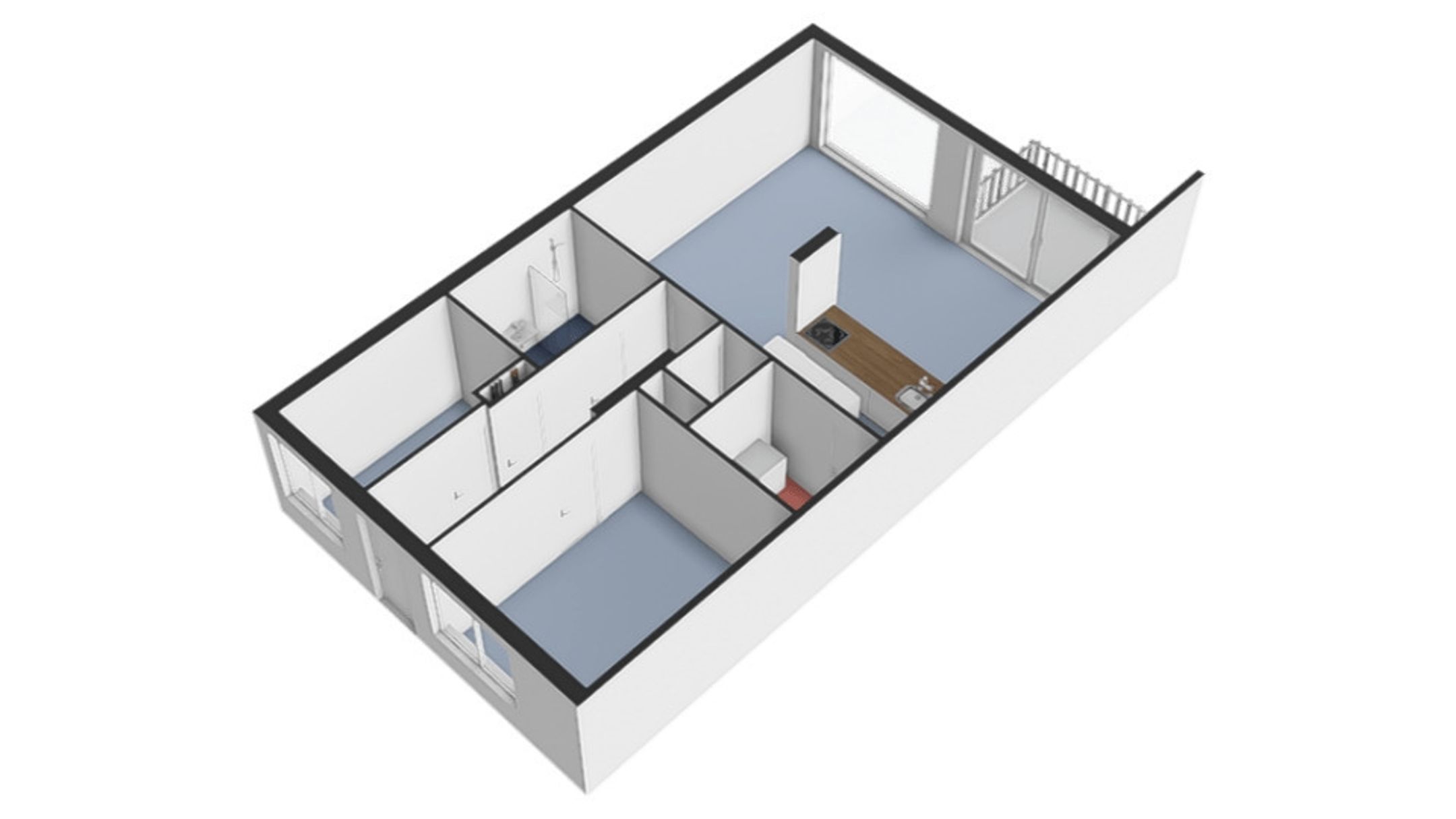 De tweede slaapkamer biedt diverse gebruiksmogelijkheden. Of u deze nu inricht als kinderkamer, logeerkamer of thuiswerkplek, het kan allemaal. Het grote raam zorgt voor voldoende daglicht en de neutrale afwerking maakt het eenvoudig om de kamer naar eigen wens in te richten.