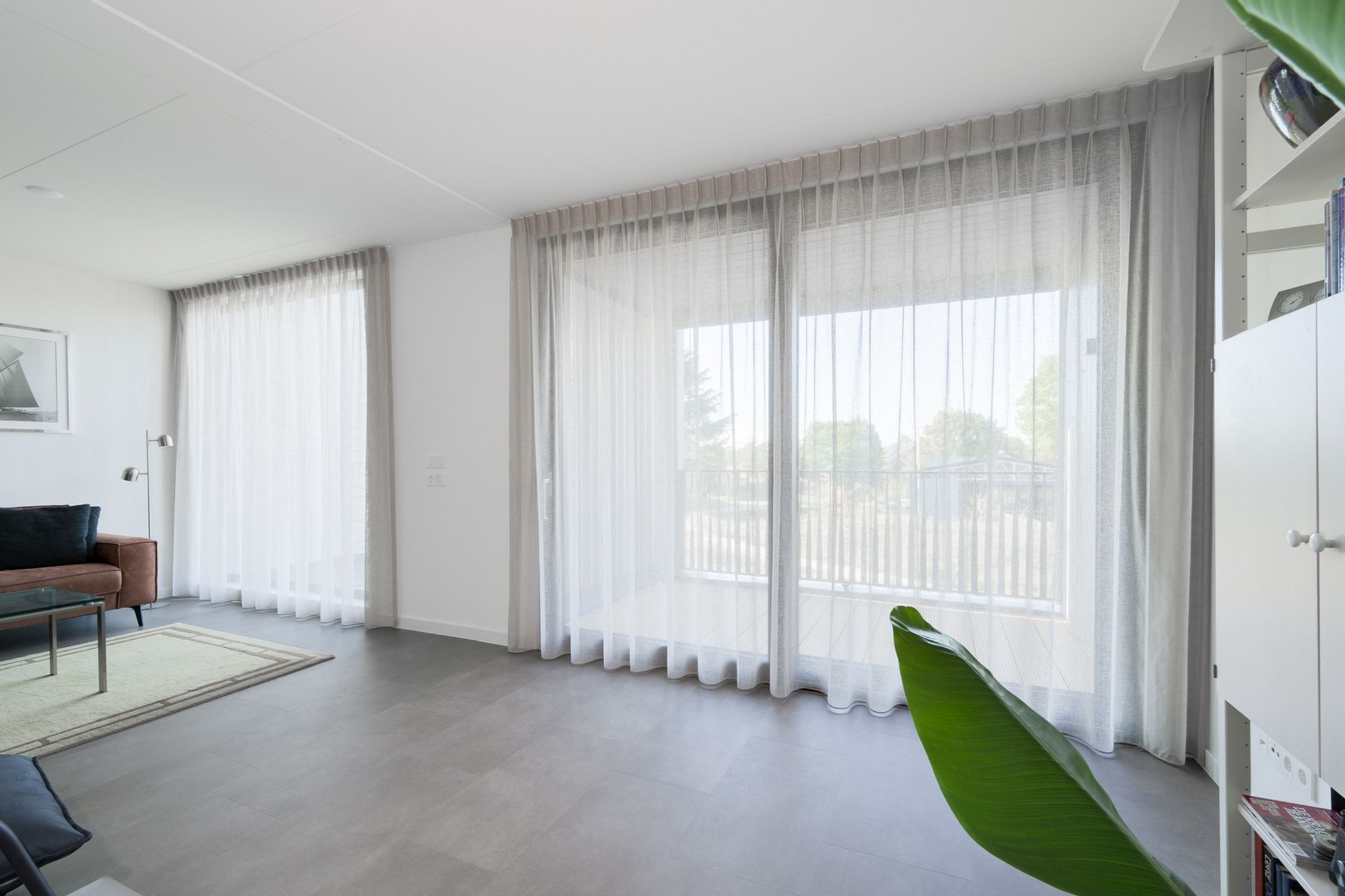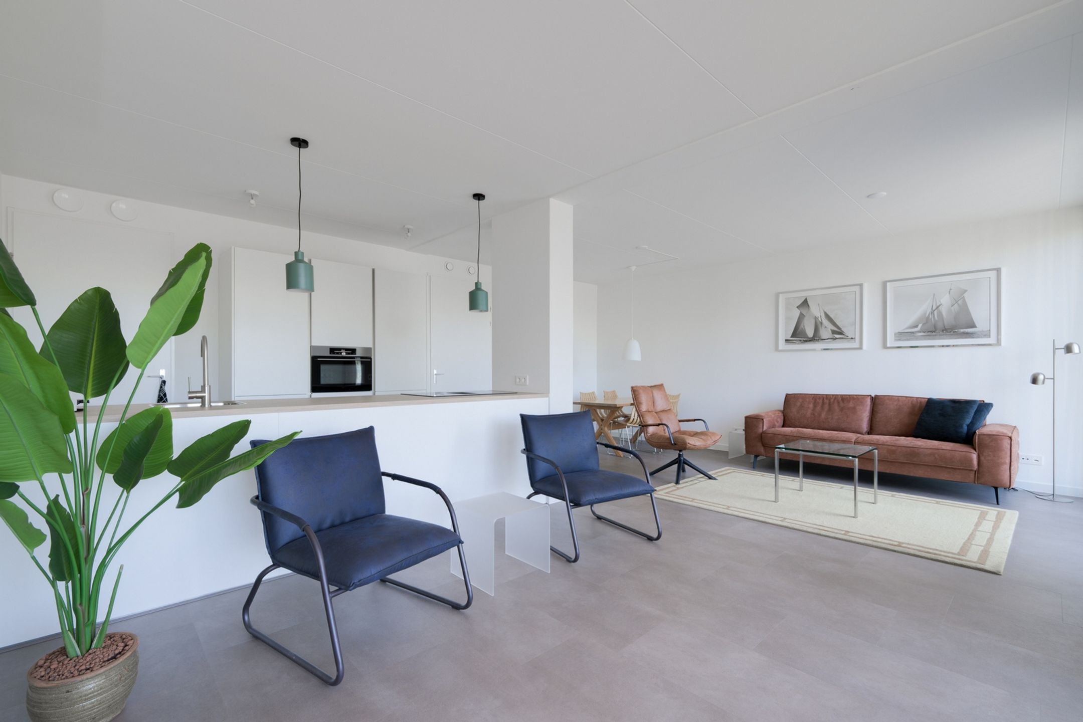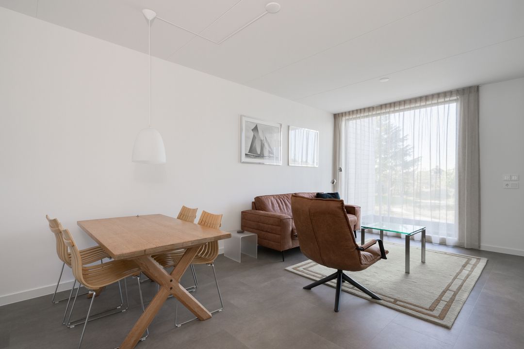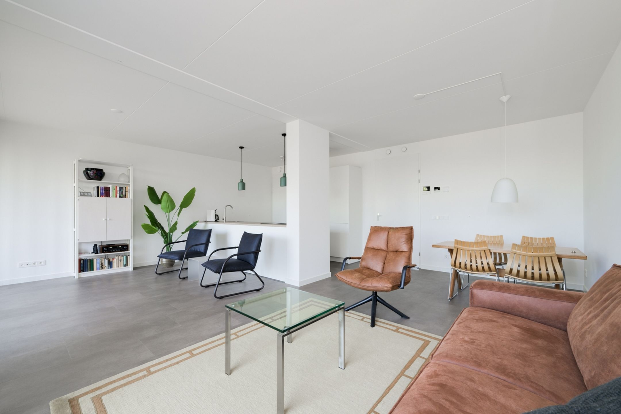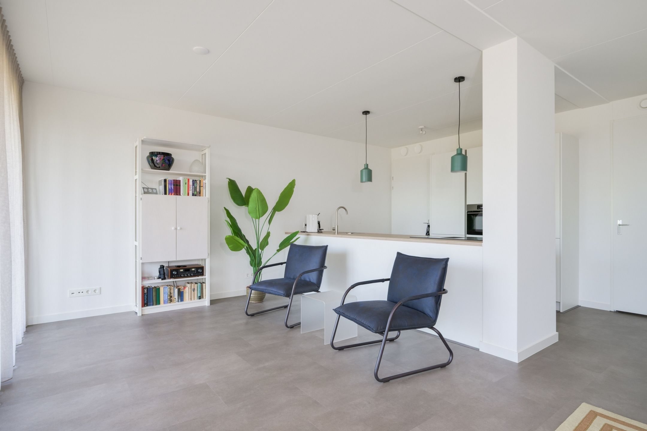De woonkamer verrast met zijn ruimtelijkheid en lichtinval. De grote raampartij vult de ruimte met natuurlijk licht, terwijl de open verbinding met de keuken een prettig en vrij gevoel geeft. De neutrale afwerking met witte wanden vormt een stijlvolle basis voor uw eigen inrichting. Via de brede schuifpui heeft u direct toegang tot het overdekte balkon. De ruimte is groot genoeg voor een comfortabele zithoek én een royale eettafel.