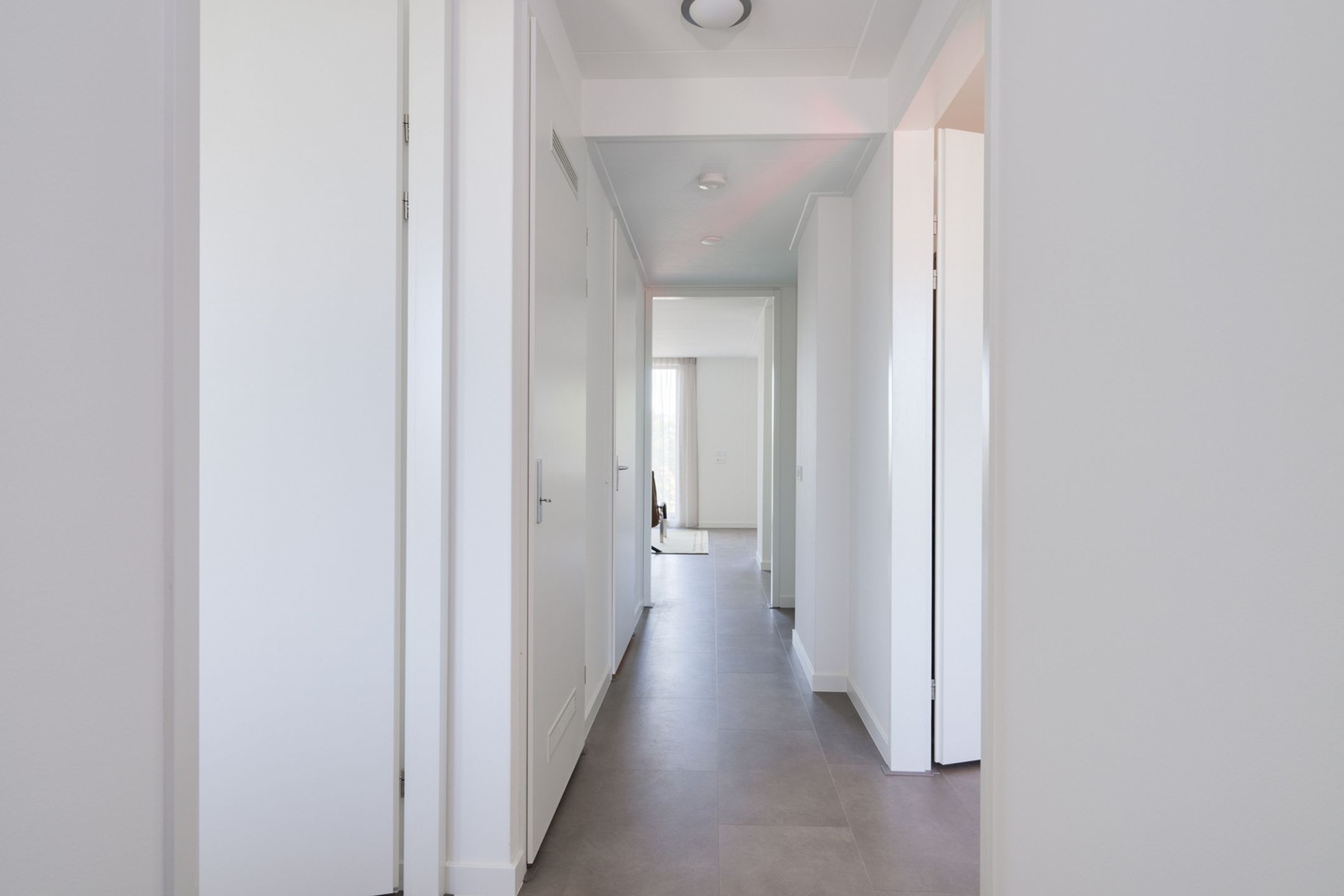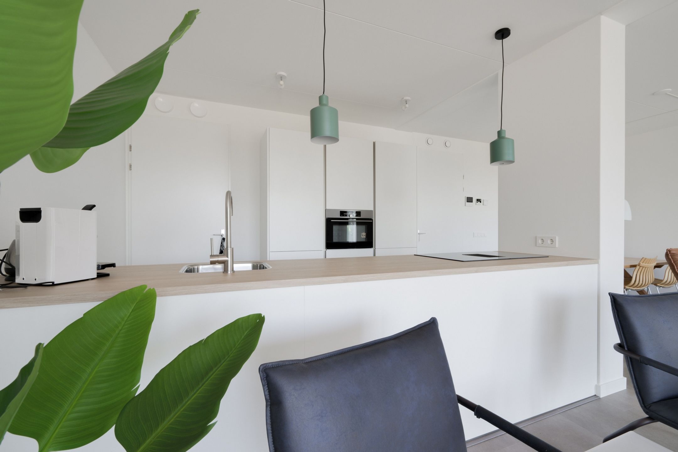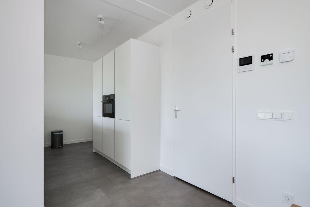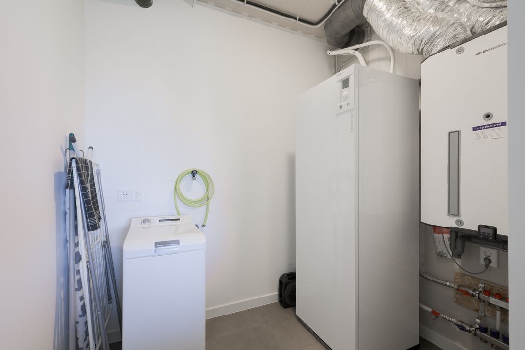 Aangrenzend aan de keuken bevindt zich een goed ingerichte technische ruimte. Hier zijn de duurzame installaties ondergebracht die dit appartement zo energiezuinig maken: de warmtepomp en het warmteterugwinsysteem zorgen samen voor een constant comfortabel binnenklimaat met minimaal energieverbruik. Tevens biedt deze ruimte plaats aan de wasmachine en droger.